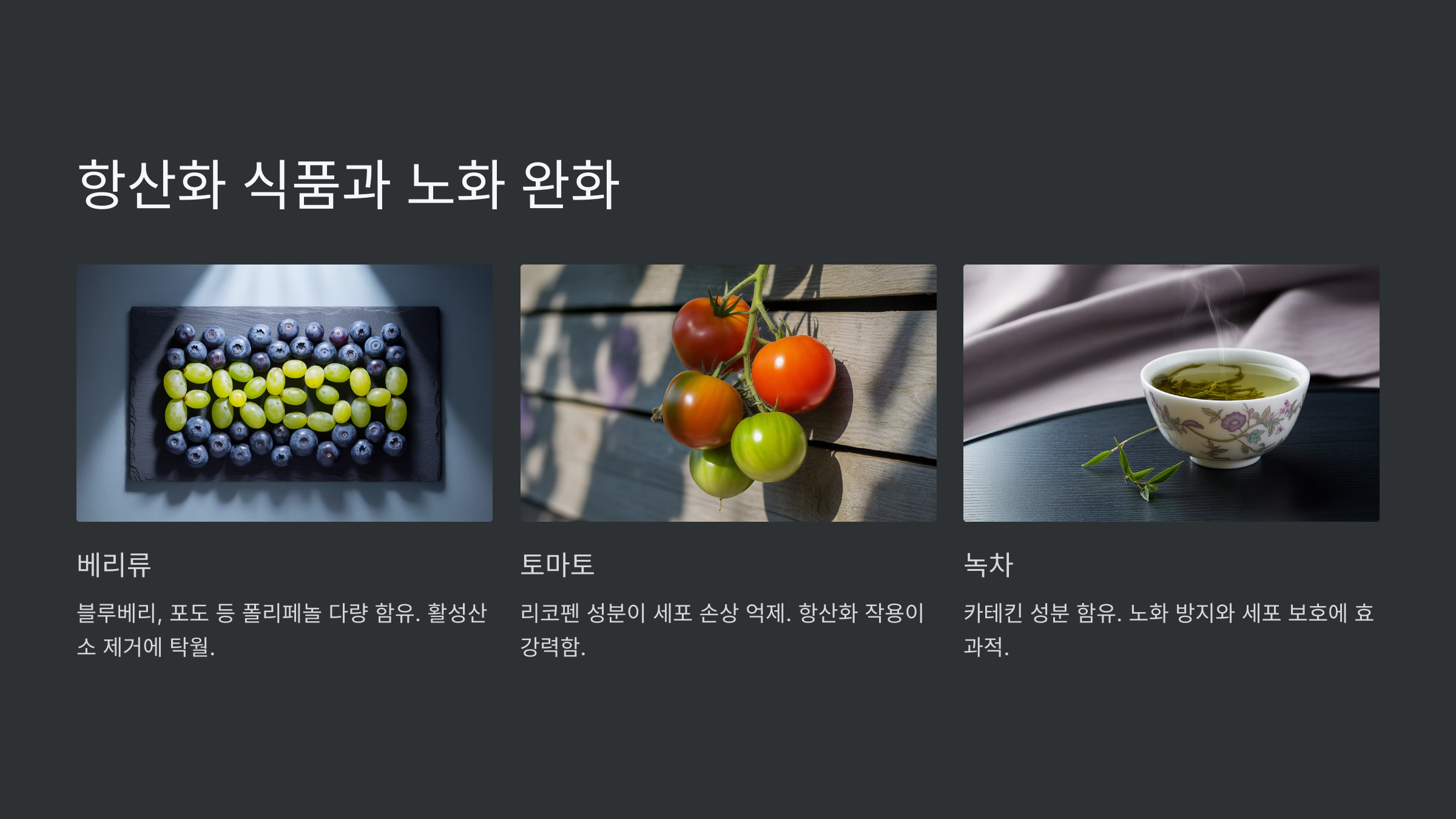 👇 이제 노화 늦추는 항산화 음식도 함께 볼까요?