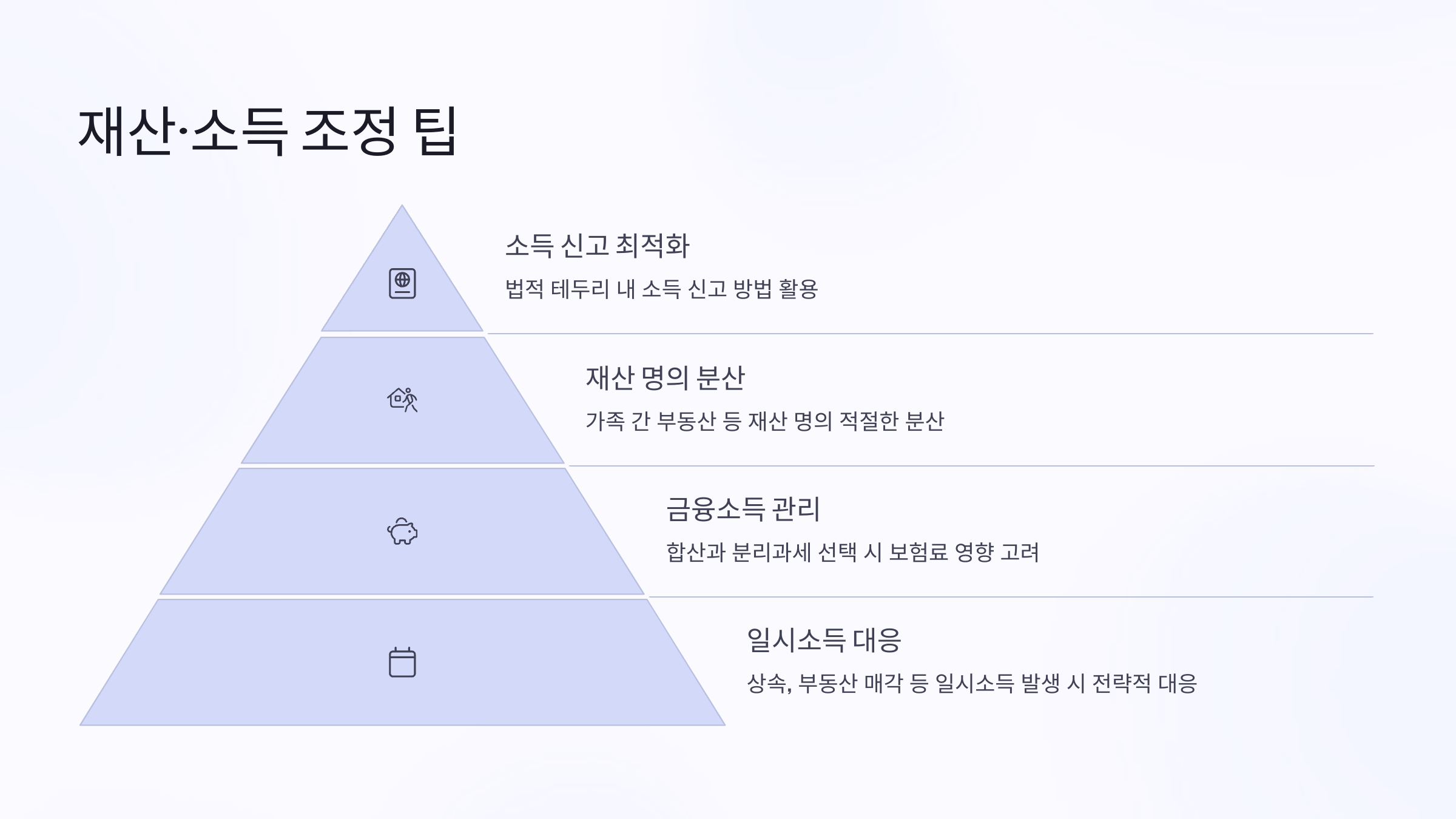 | 금융/연금 소득 증가 | 예상 외 보험료 부담 | 비과세 상품 적극 활용 |