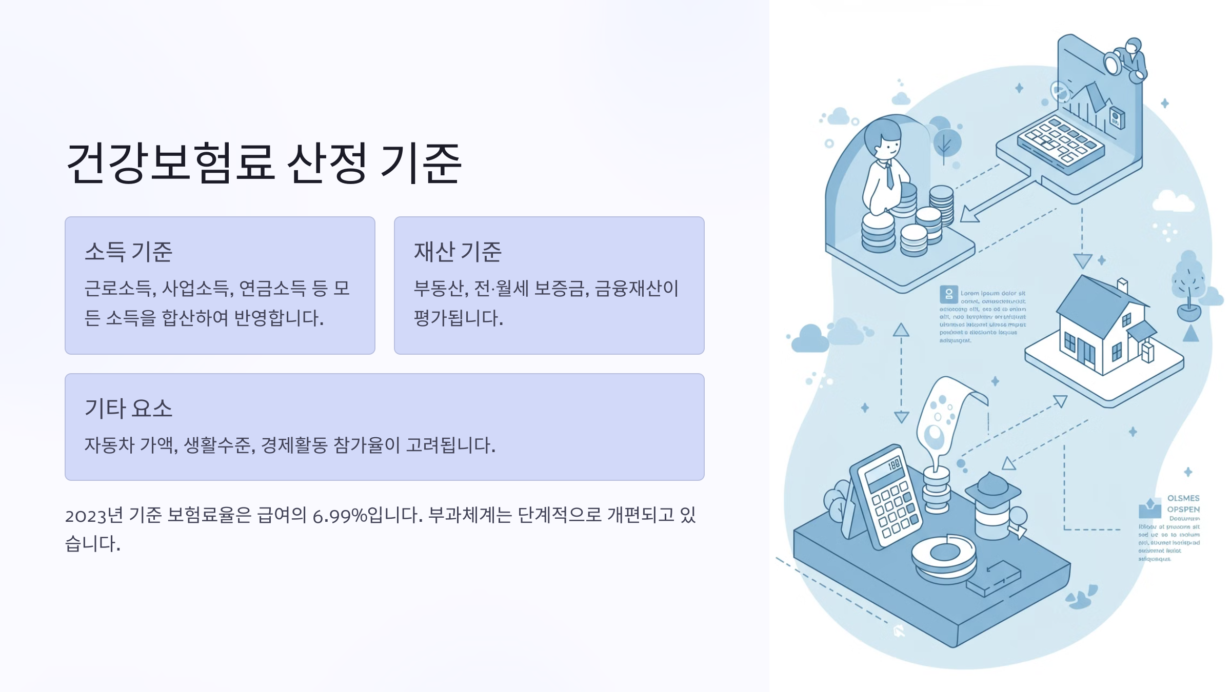 건강보험료는 단순히 소득만으로 결정되지 않아요. 여러 가지 항목이 복합적으로 작용해 계산돼요. 🤔