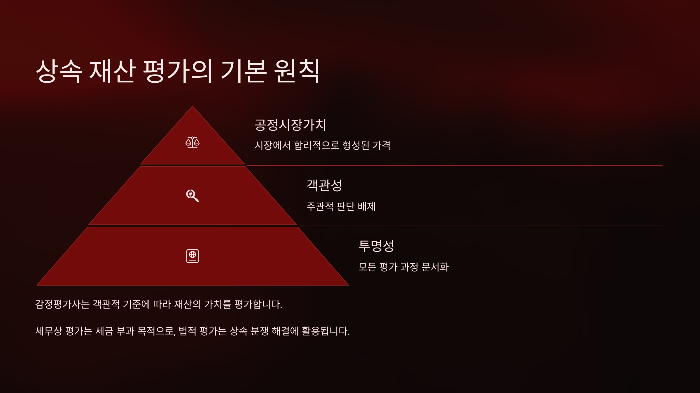 두 번째 원칙은 '객관성 확보'예요. 단순히 상속인이나 제3자가 주장하는 금액이 아니라, 공신력 있는 기관이나 전문가의 자료를 기반으로 평가돼야 해요. 이를 통해 상속인 간의 분쟁을 예방할 수 있죠.
