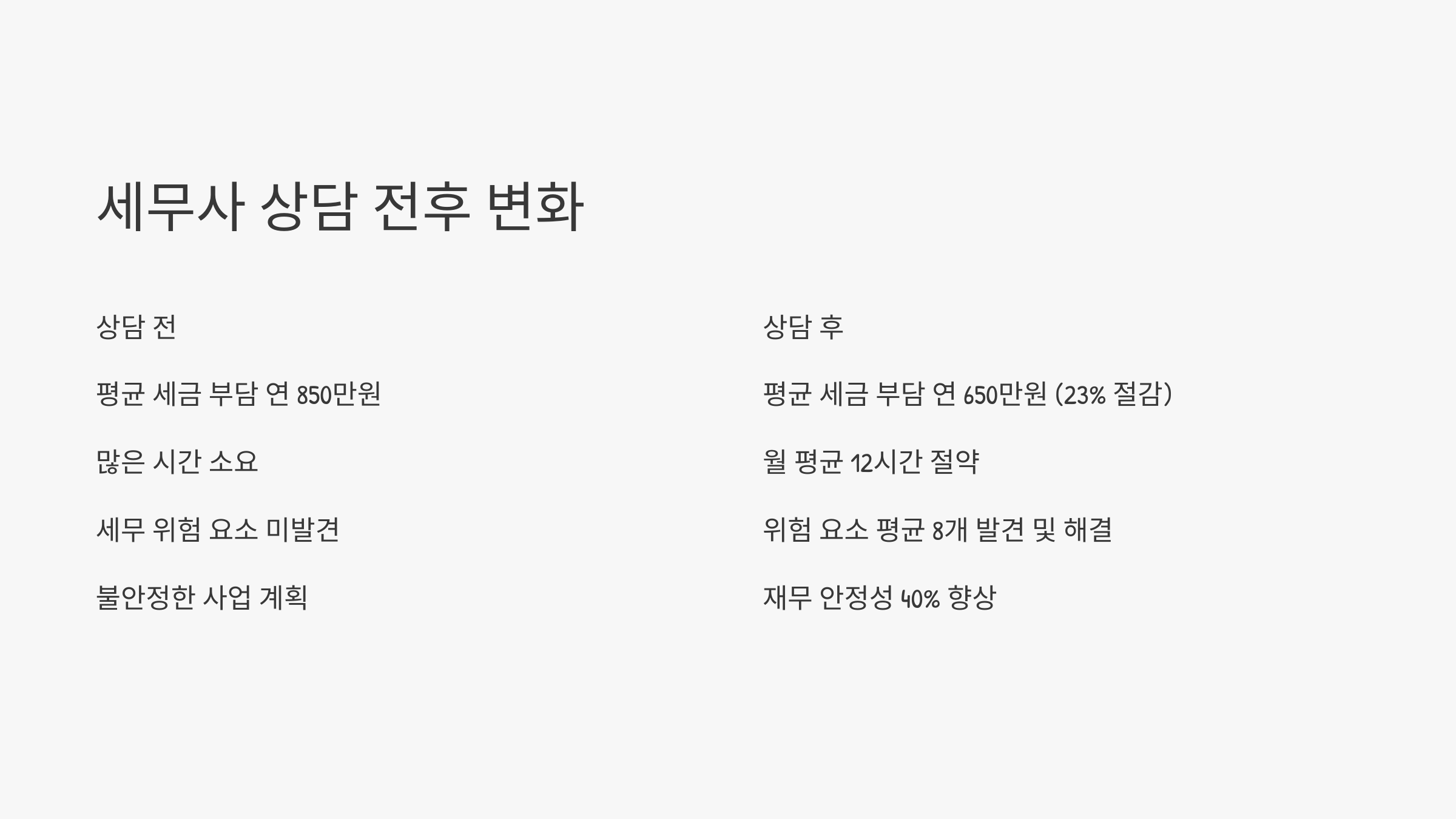 이제 세무사 상담을 처음 받아보려는 분들을 위해, 제가 경험한 상담 전후 변화와 꿀팁들을 전부 공유해볼게요! 🙌