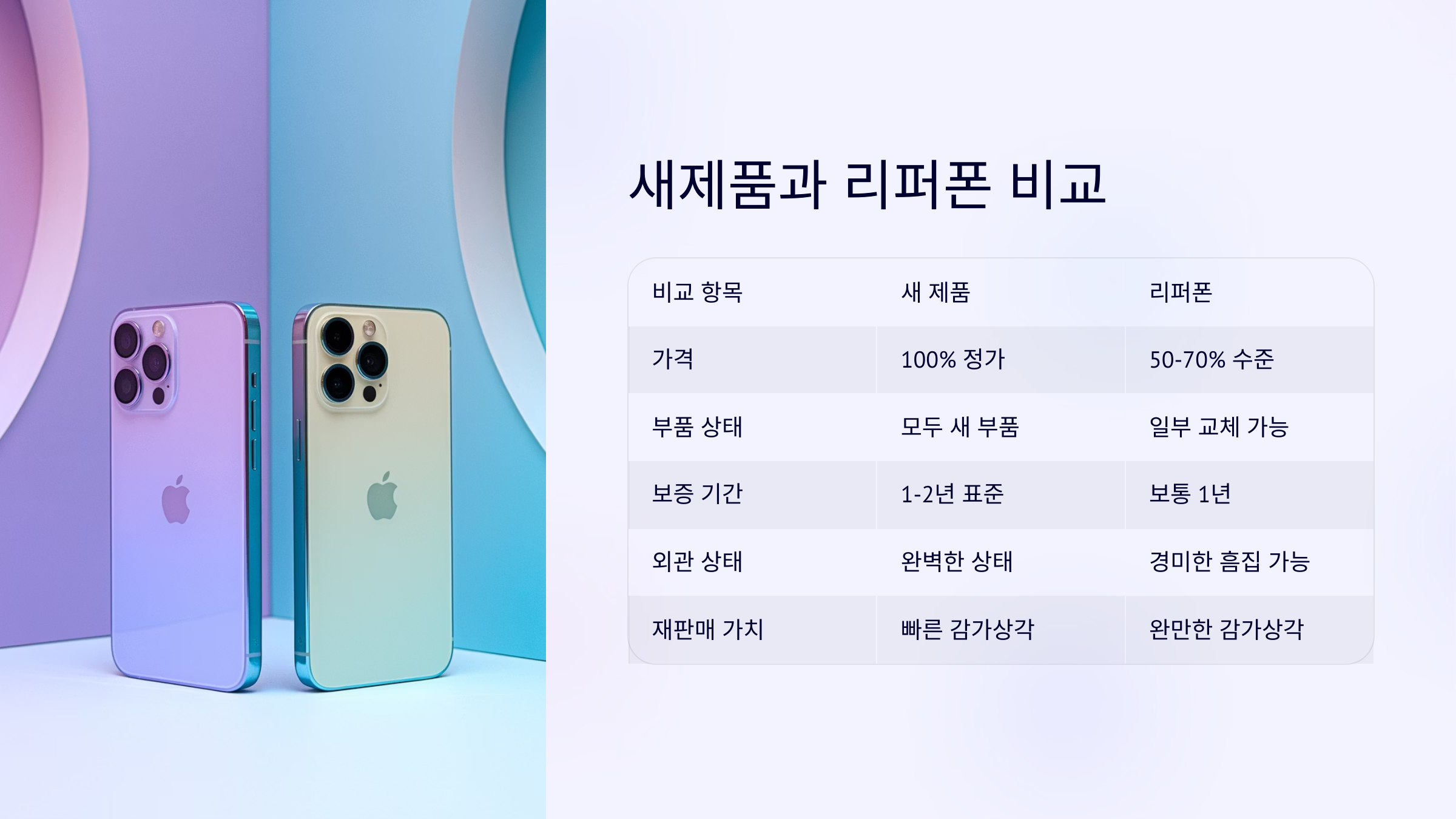 아이폰 새제품과 리퍼폰, 둘 다 매력 있지만 확실한 차이가 있어요. 어떤 선택이 내게 더 맞는지 비교해보면 훨씬 쉬워요! 🔍