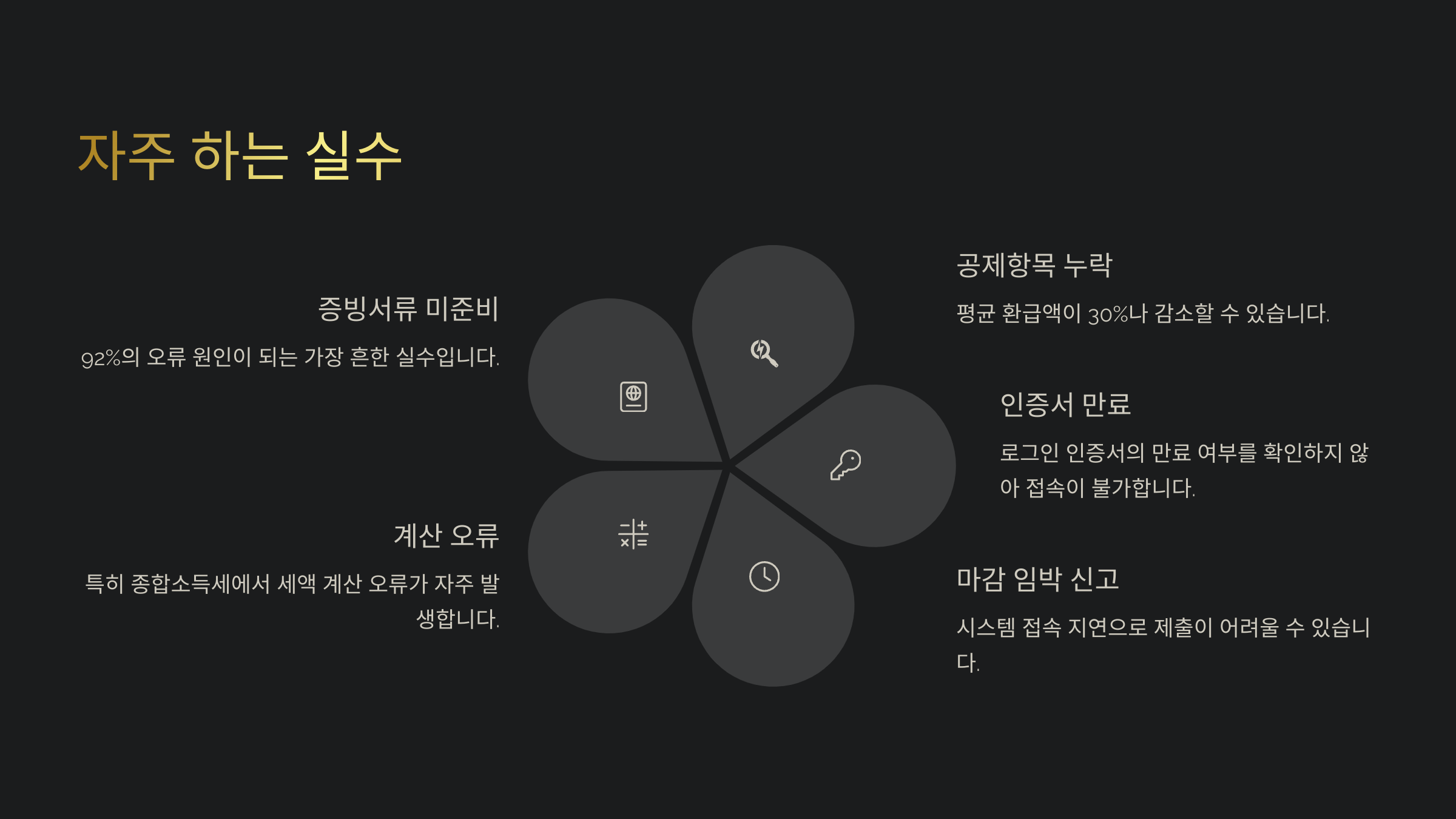 | 공제 누락 | 환급액 축소 | 모든 공제 항목 꼼꼼히 확인 |