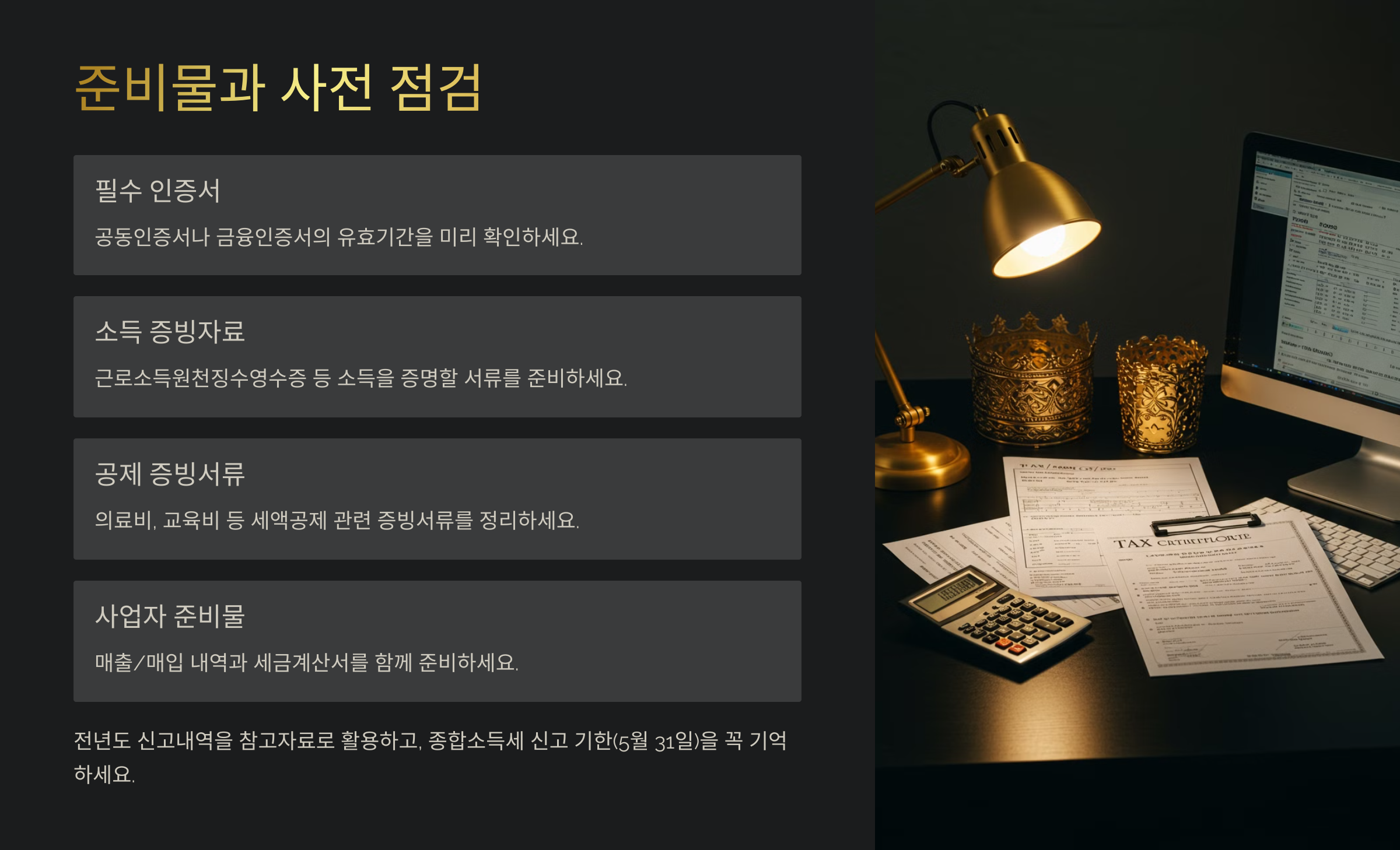 🧾 세금 신고 준비물 요약표