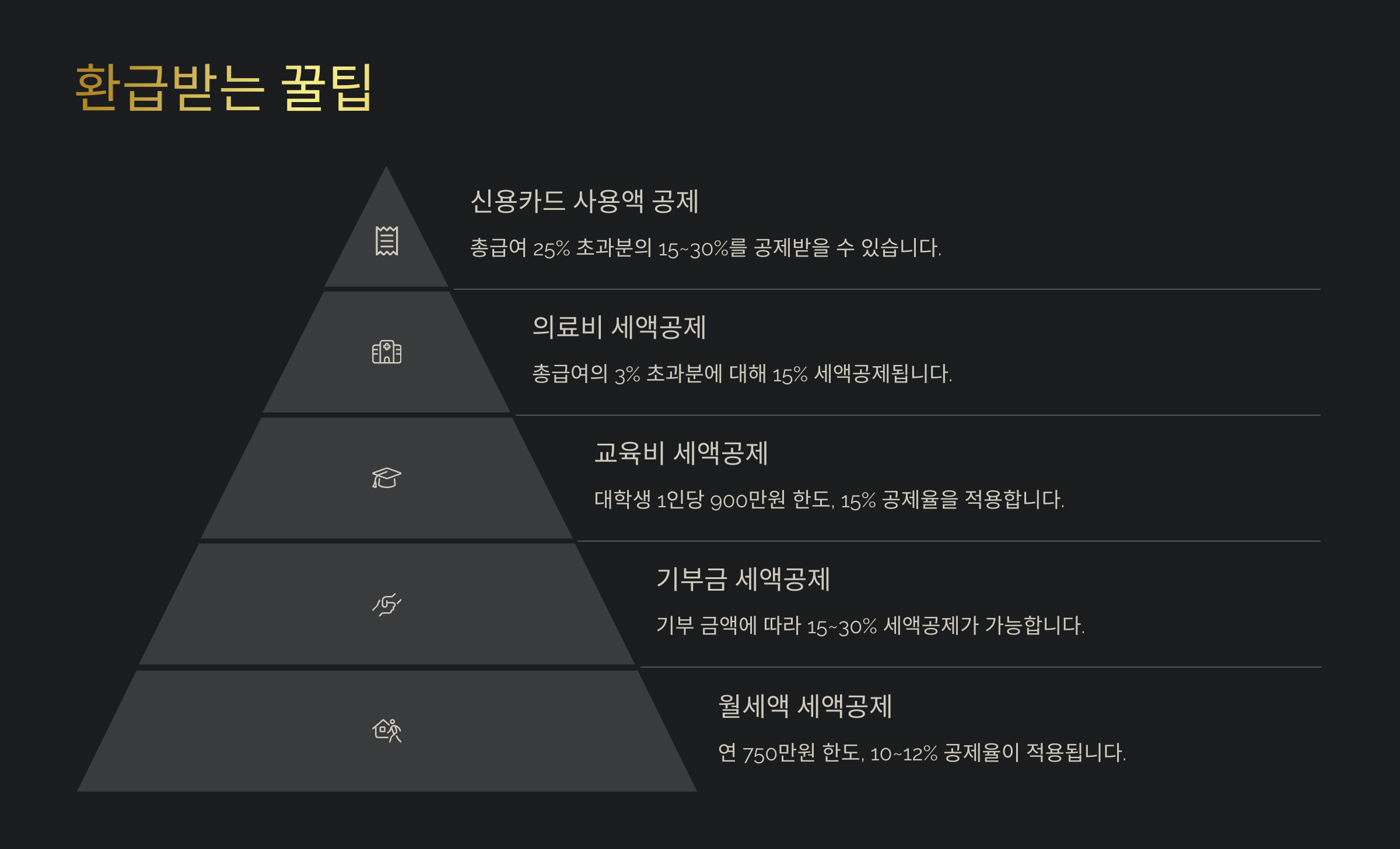 신용카드, 현금영수증, 의료비, 교육비, 기부금 등 세액공제 항목
