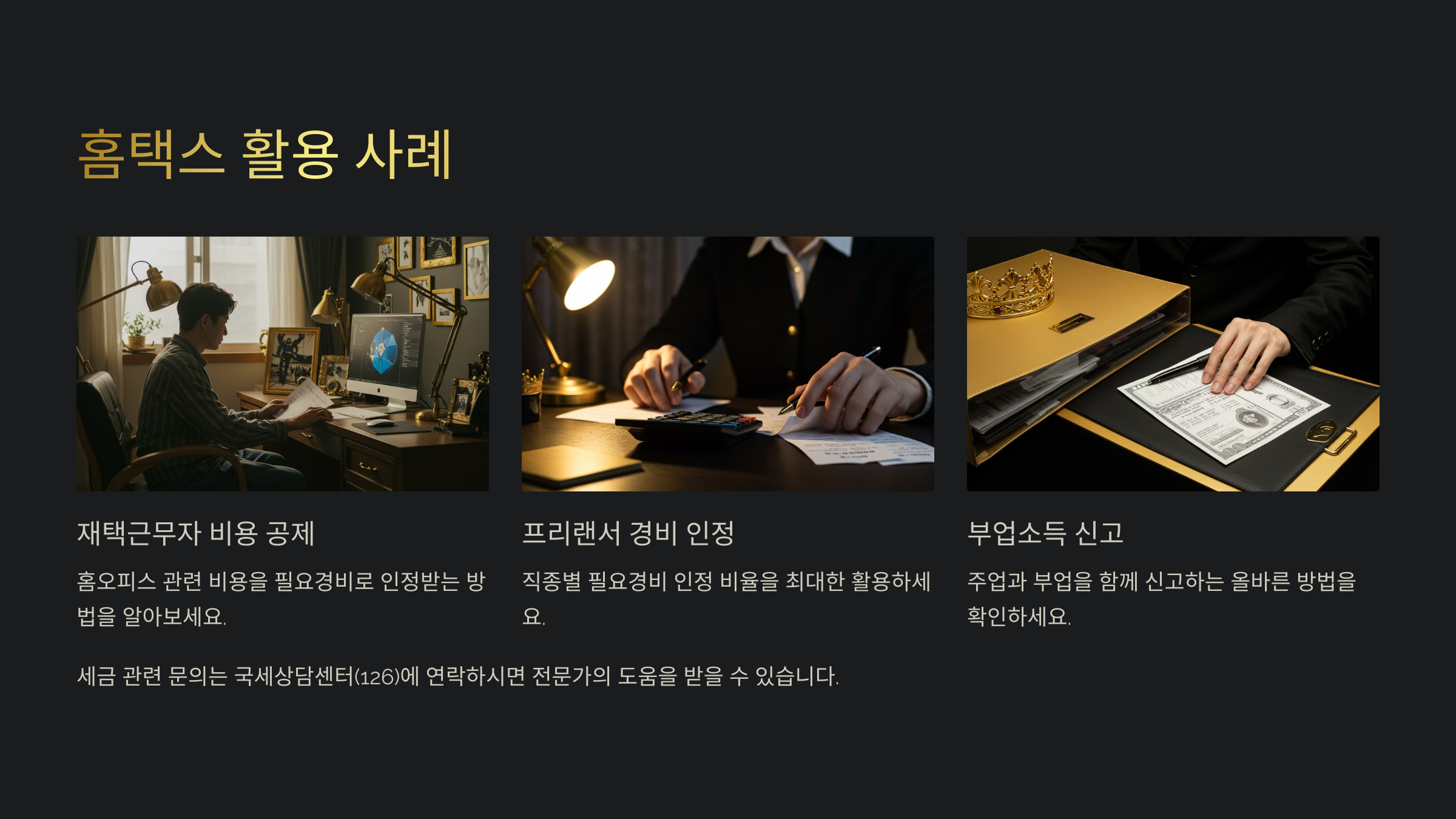 | 세금 신고 | 종합소득세, 부가세, 원천세 등 전자신고 |