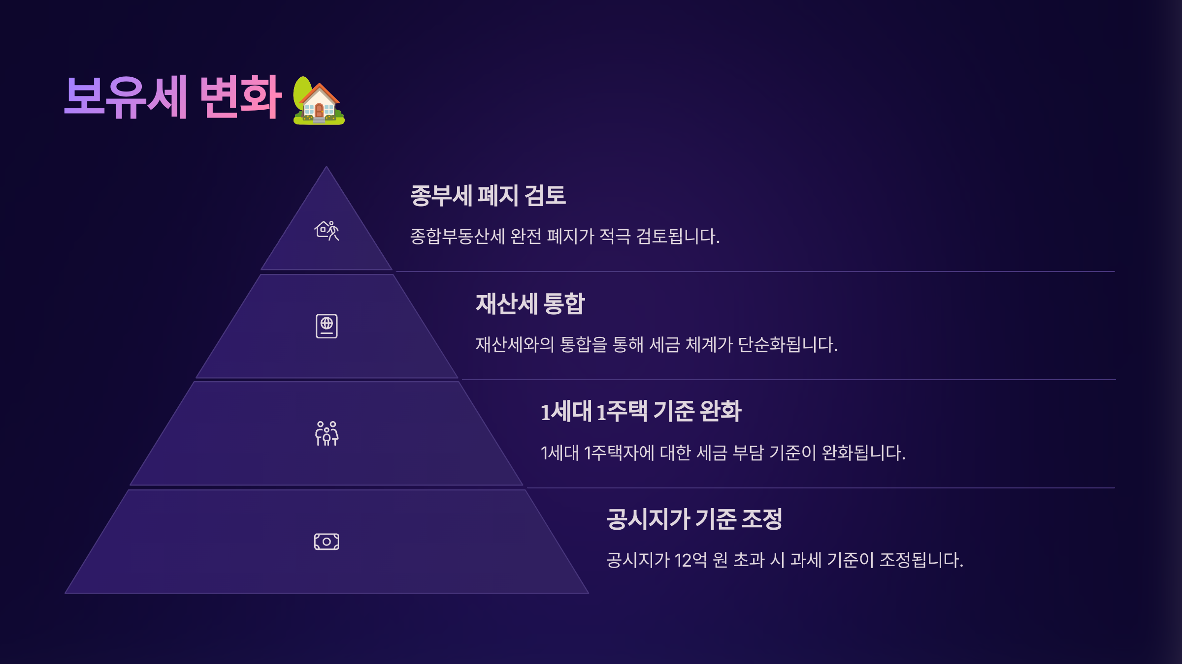 1️⃣ 재산세 세율 변화 없음, 과세표준 낮춤