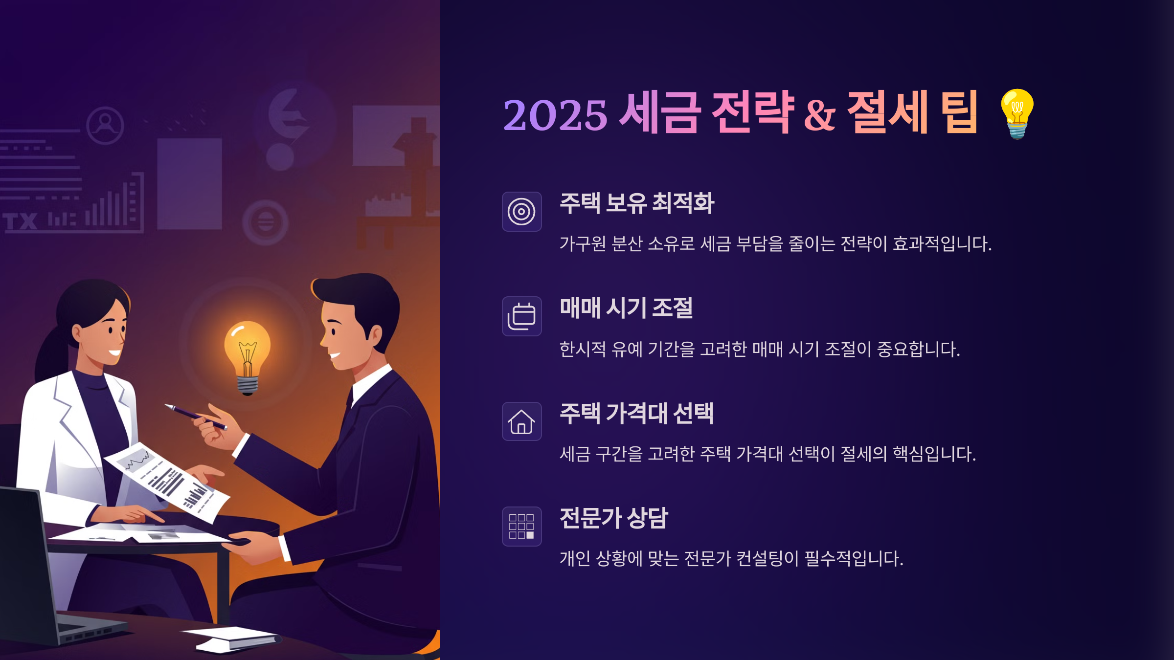 세금은 아는 만큼 아끼는 시대예요! 2025년 부동산 세금 개정에 맞춰 다음과 같은 전략을 세우면 불필요한 납부를 줄일 수 있어요.