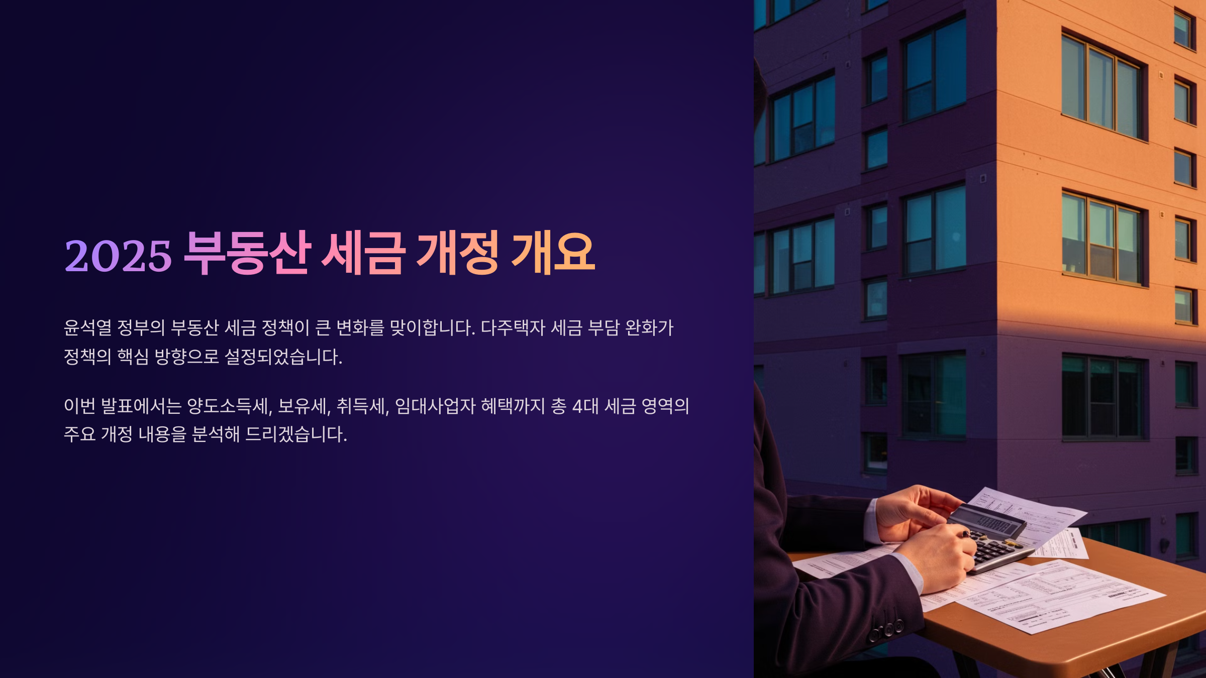 지금부터 2025년 달라진 부동산 세금 내용들을 항목별로 하나씩 자세히 정리해드릴게요! 📌