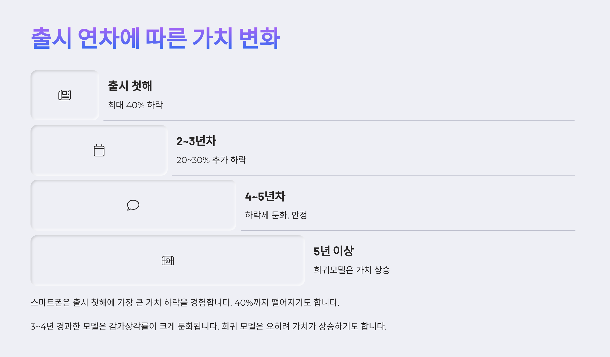 스마트폰의 중고 시세는 ‘출시된 지 얼마나 되었는가’에 따라 달라져요. 이건 단순히 오래됐다는 개념이 아니라, 시장에서 해당 모델이 어떻게 인식되고 있는지가 핵심이에요. ⏳