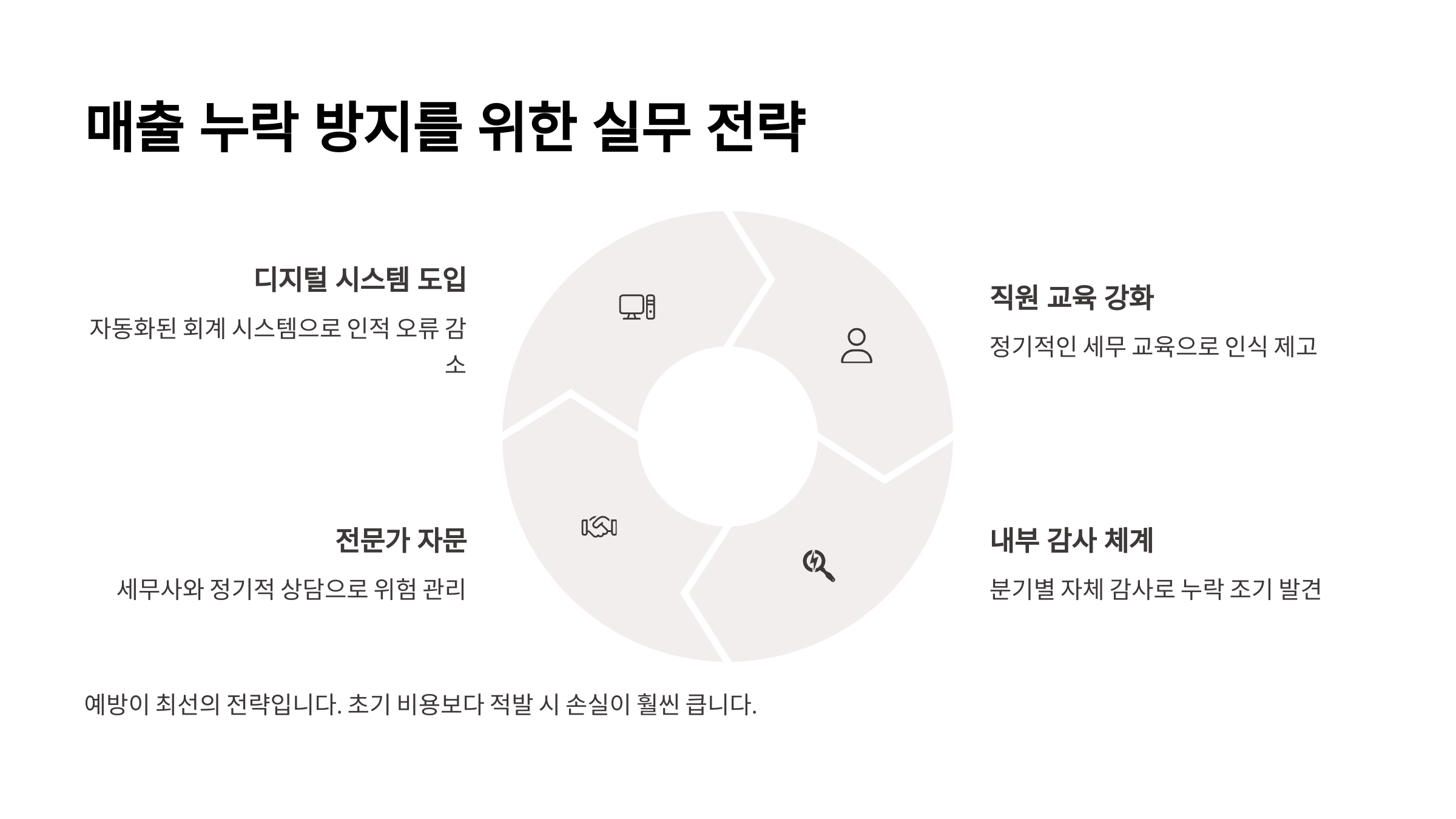 사업을 하다 보면 의도하든, 실수든 매출 누락이 발생할 수 있어요. 하지만 국세청은 이런 누락을 꼼꼼하게 감시하고 있고, 적발되면 엄청난 벌금이 부과될 수 있어요 😨