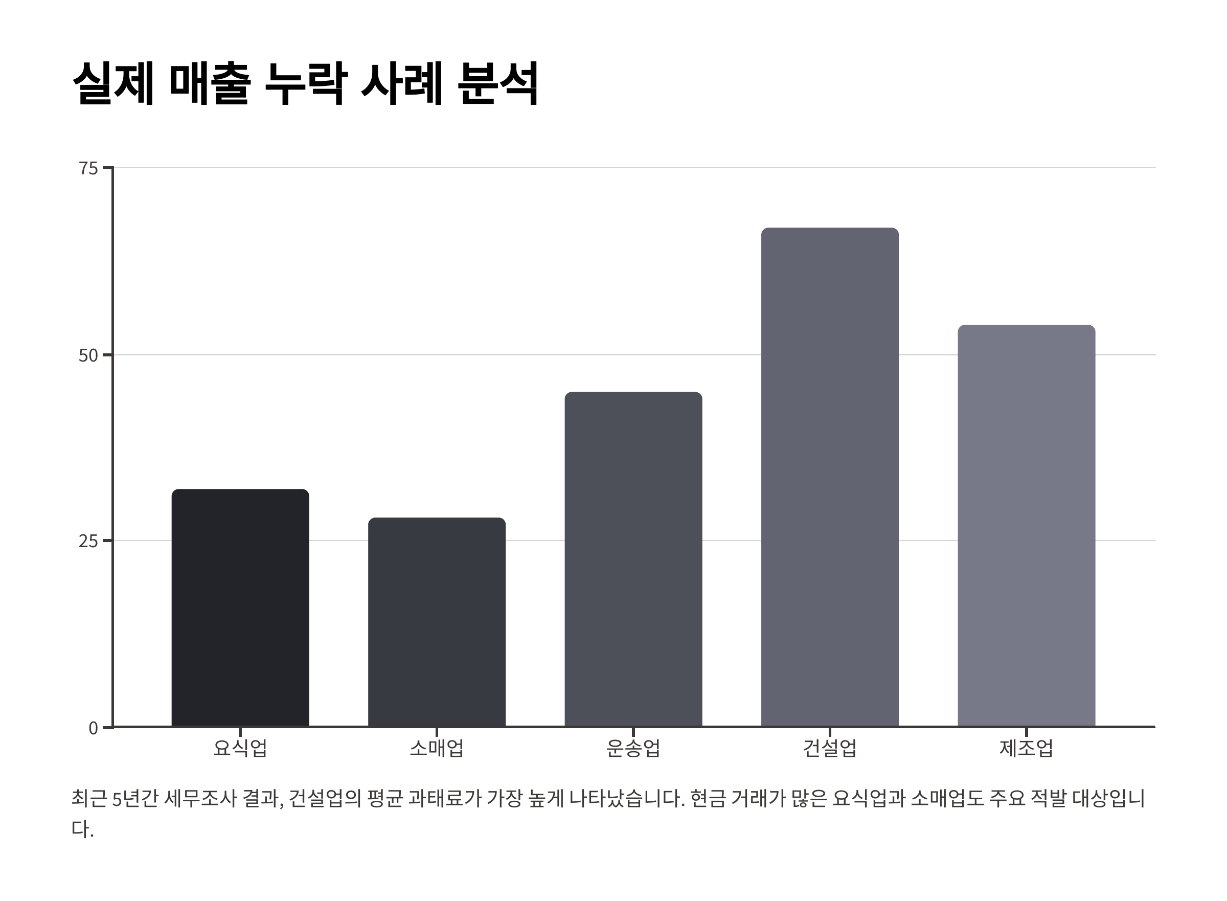 실제로 매출 누락이 적발되면, 규모에 따라 수백만 원에서 수천만 원의 과태료가 부과돼요. 다음은 업종별로 실제로 있었던 과태료 사례들이에요.
