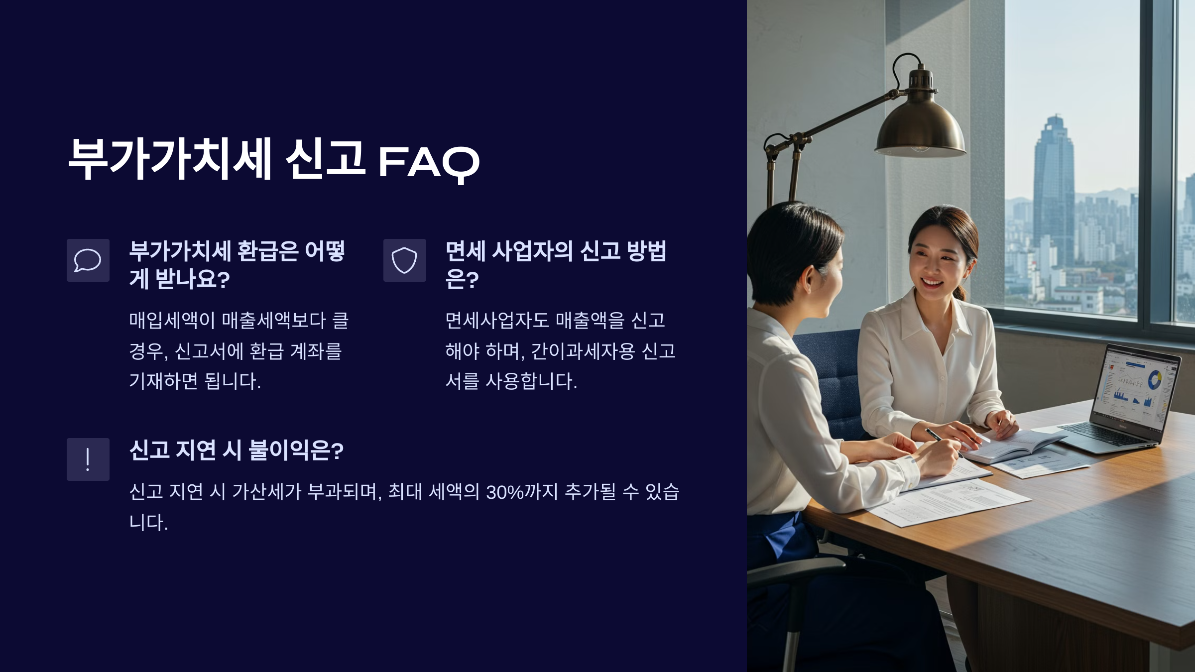 이제 마무리로, 부가가치세 신고에 대해 자주 묻는 질문 8가지! FAQ로 정리해볼게요 😊
