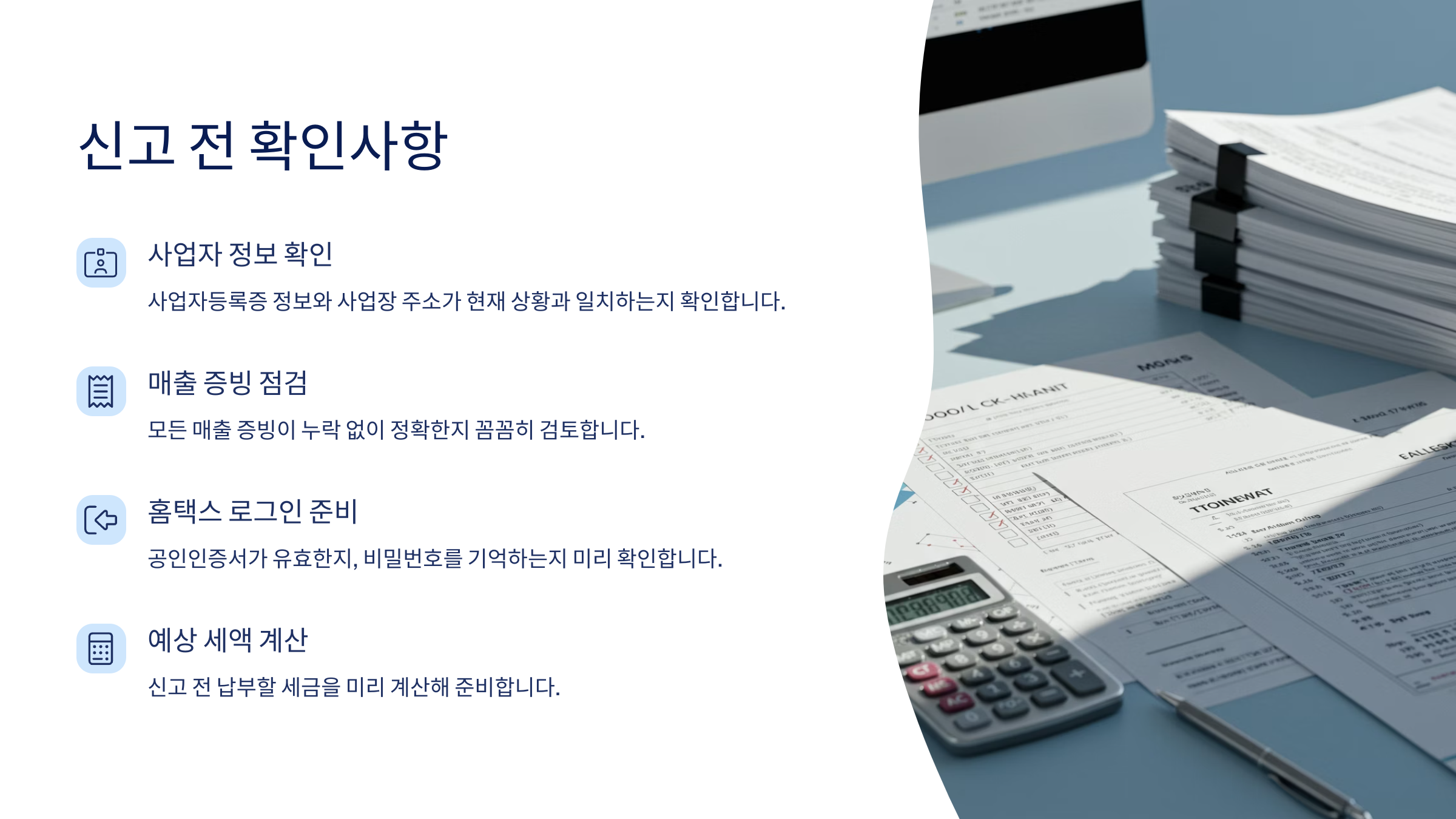 간이과세자는 세금신고가 단순하다고 해도, 실수 없이 정확히 마치려면 몇 가지 체크리스트는 반드시 확인해야 해요. ✍️