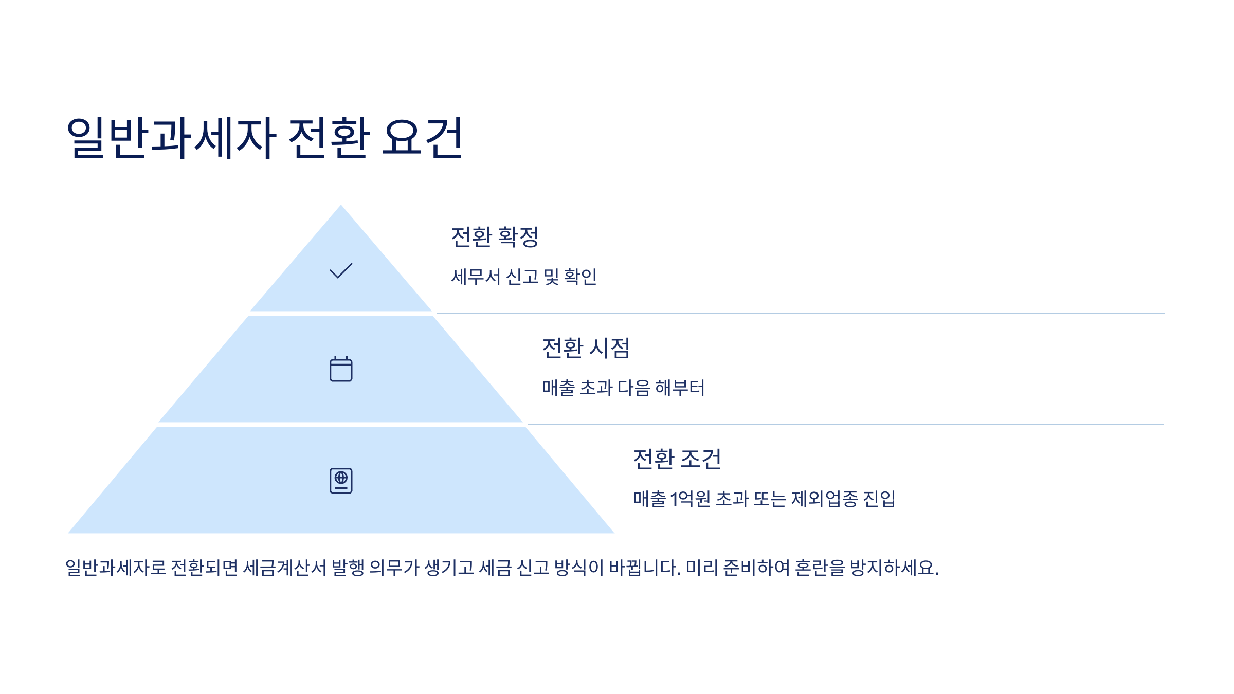 간이과세자는 매출이 일정 금액을 초과하면 자동으로 일반과세자로 전환돼요. 이 전환은 강제이며, 선택사항이 아니기 때문에 기준을 잘 알고 있어야 해요!