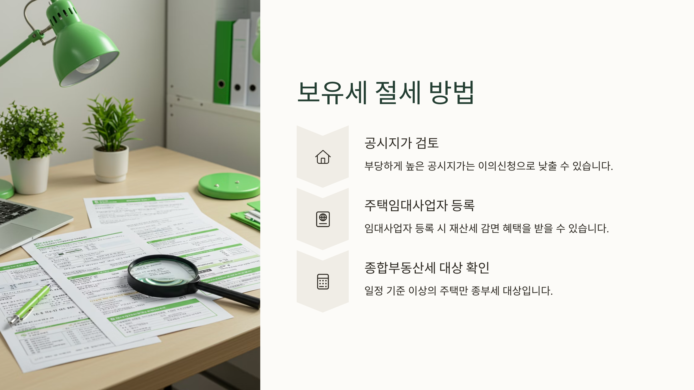 보유세를 줄이기 위해 가장 많이 활용되는 전략은 ‘공시가격 인하 의견 제출’이에요. 공시가격에 이의가 있다면 일정 기간 내에 의견서를 제출해서 재산세 기준이 되는 공시가격을 낮출 수 있어요.