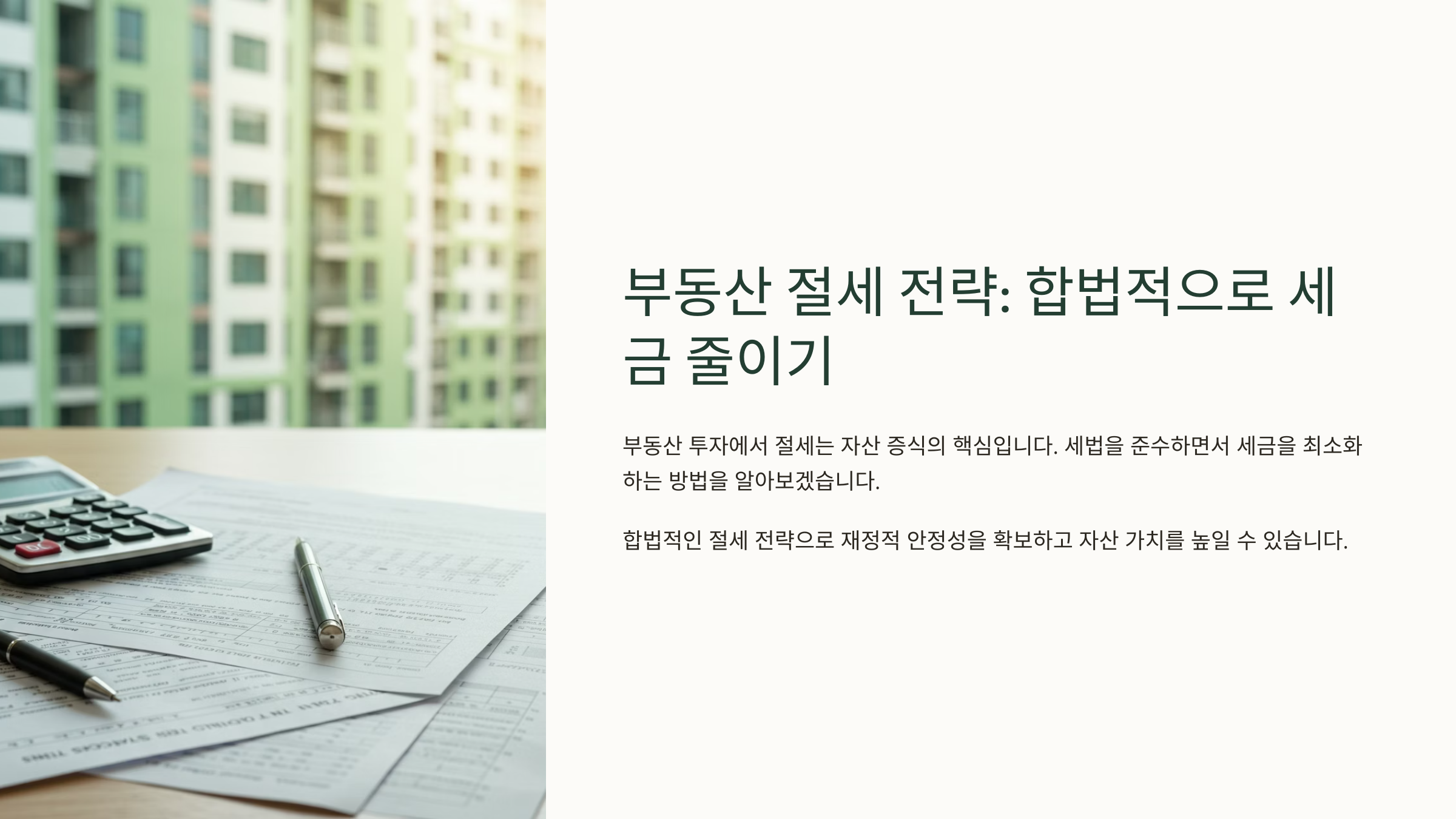 부동산 절세는 단순히 세금을 줄이는 게 아니라, 합법적인 테두리 안에서 전략적으로 세금 부담을 줄이는 걸 말해요. 특히 부동산은 거래금액이 커서 세금 한 줄기 차이도 수백만 원까지 벌어질 수 있죠.