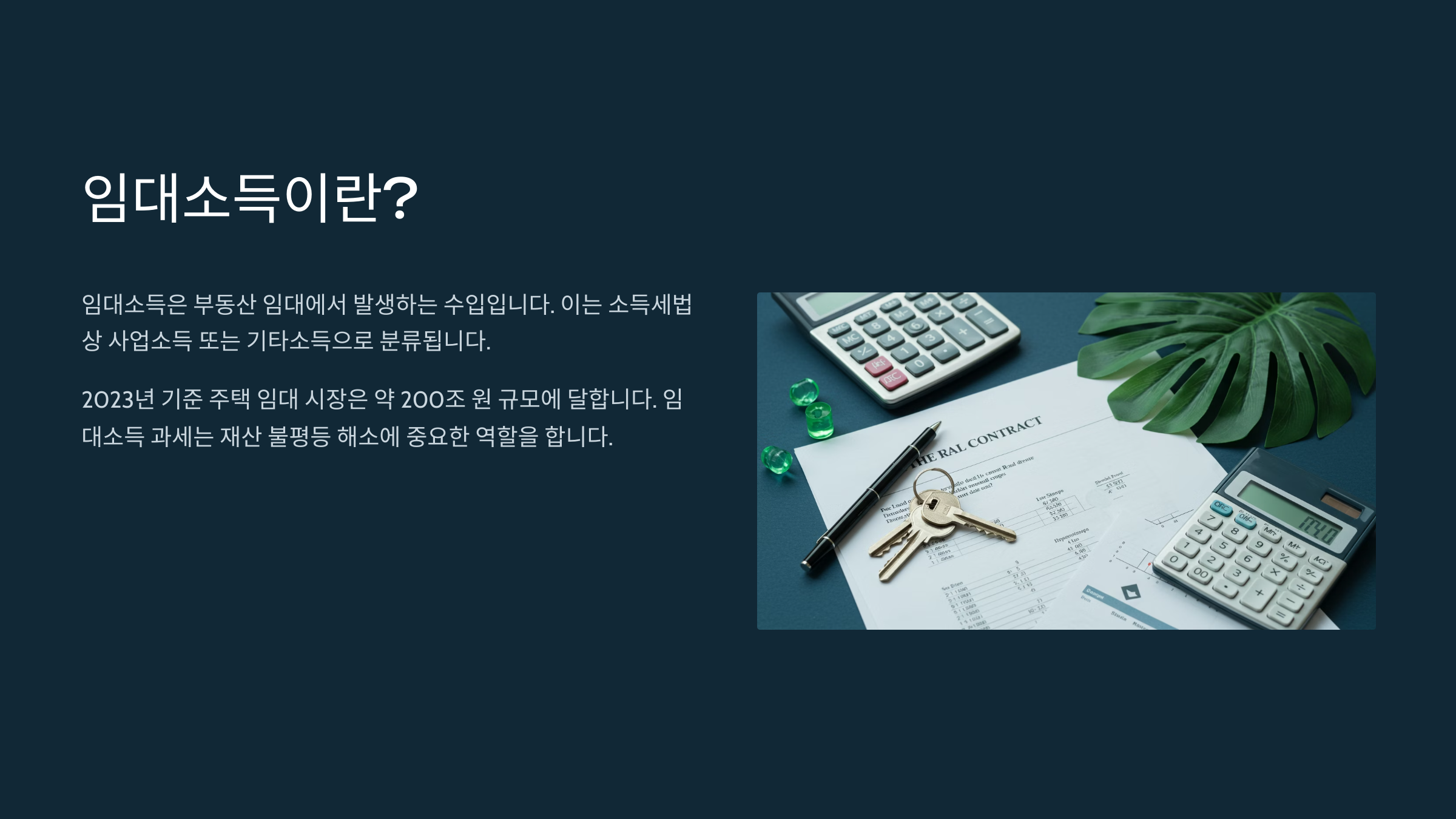 임대소득은 말 그대로 부동산을 빌려주고 받는 모든 수익을 말해요. 대표적으로는 주택, 상가, 오피스텔, 창고 등의 공간을 빌려주고 받는 월세나 보증금에서 발생하는 이자 상당액 등이 포함돼요.
