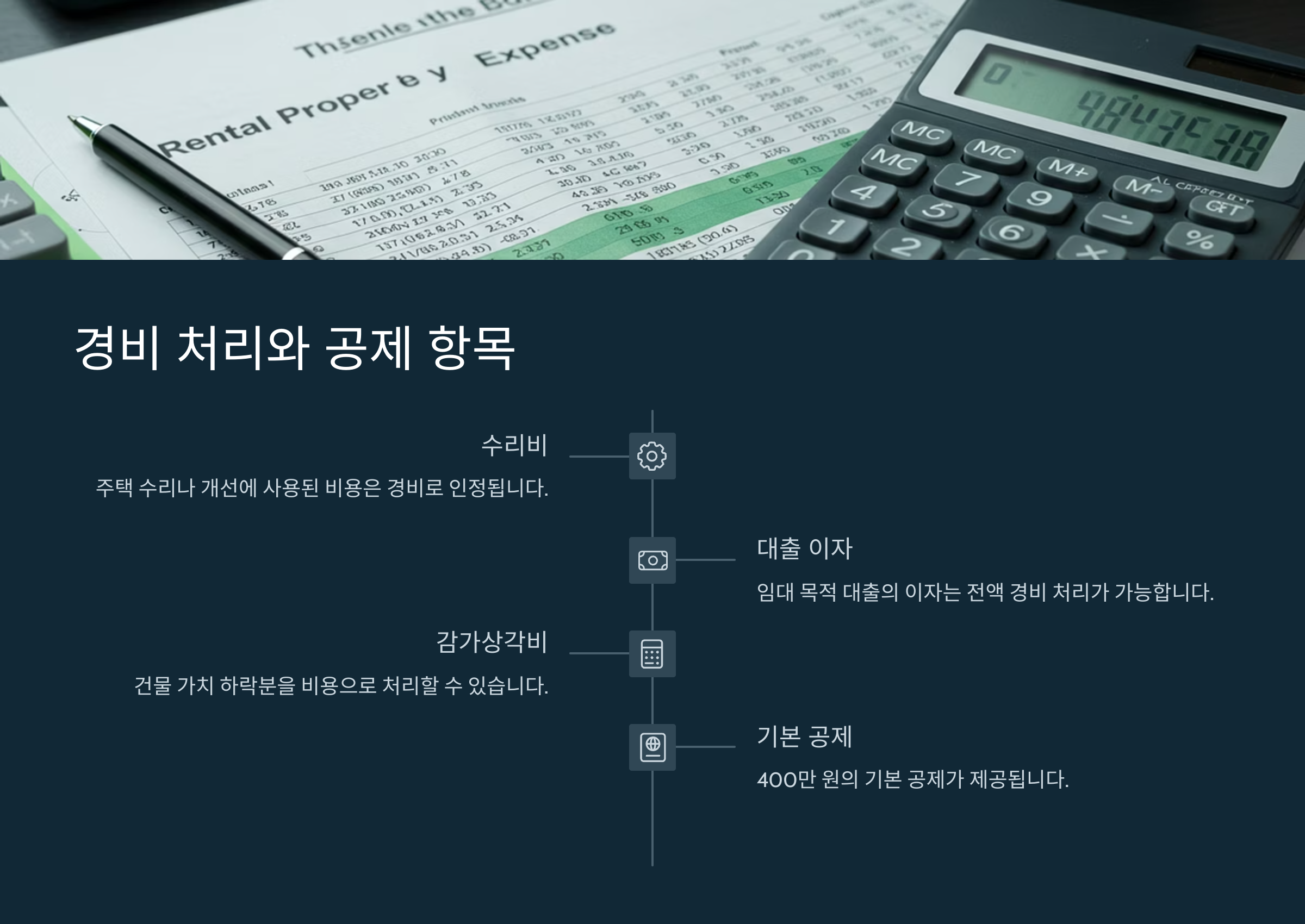 경비 처리를 잘하면 수십만 원의 세금을 줄일 수 있어요. 실제로 수선비, 중개수수료, 관리비 영수증만 잘 챙겨도 큰 절세 효과를 볼 수 있으니 절대 잊지 마세요! 💡