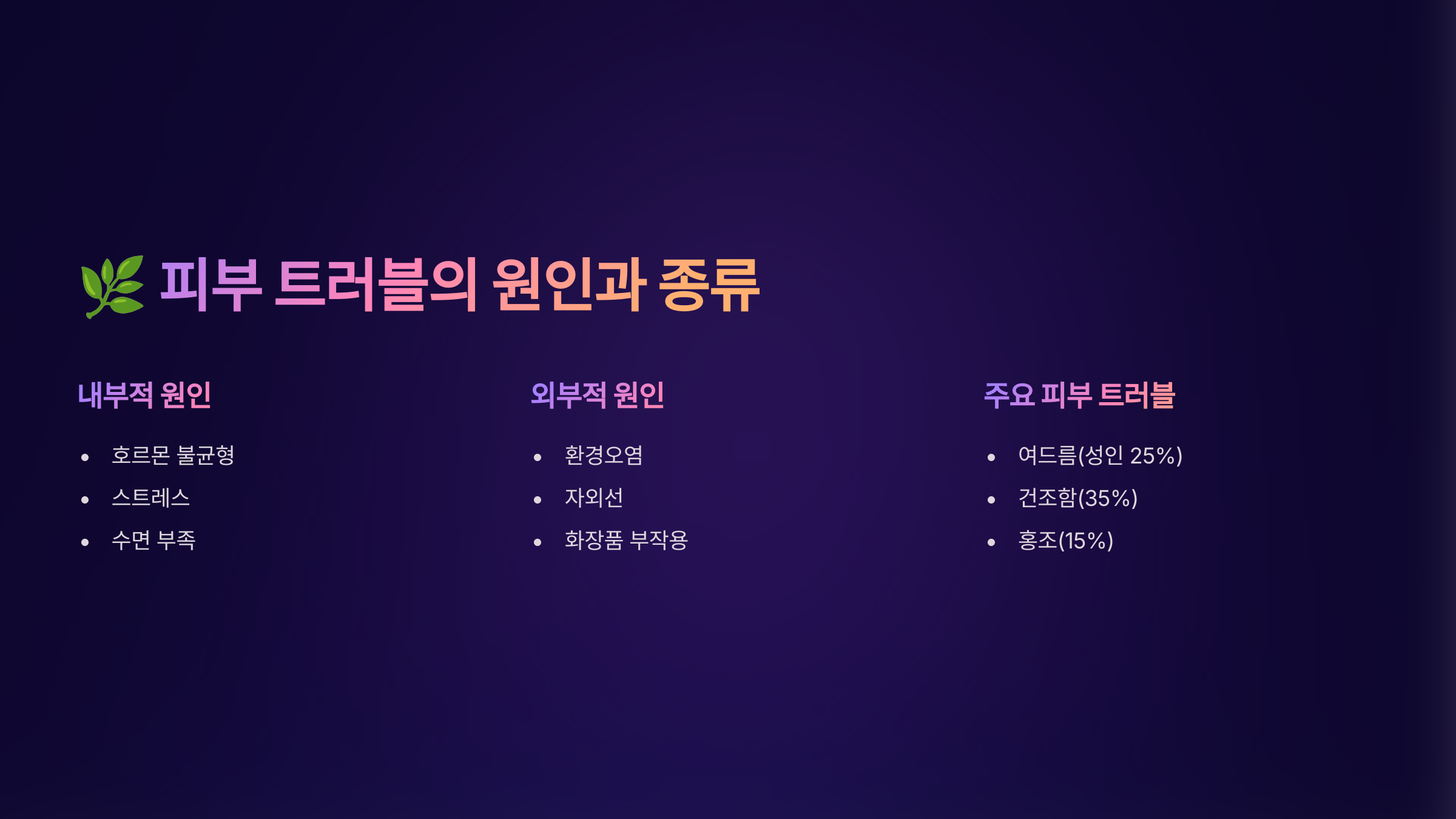 피부 트러블은 단순히 피지가 많거나 여드름이 생기는 현상을 넘어서, 우리 몸의 건강 상태를 반영하는 신호예요. 그래서 단순히 겉을 관리하는 것보다, 내부 원인을 정확히 이해하는 것이 더 중요하답니다.