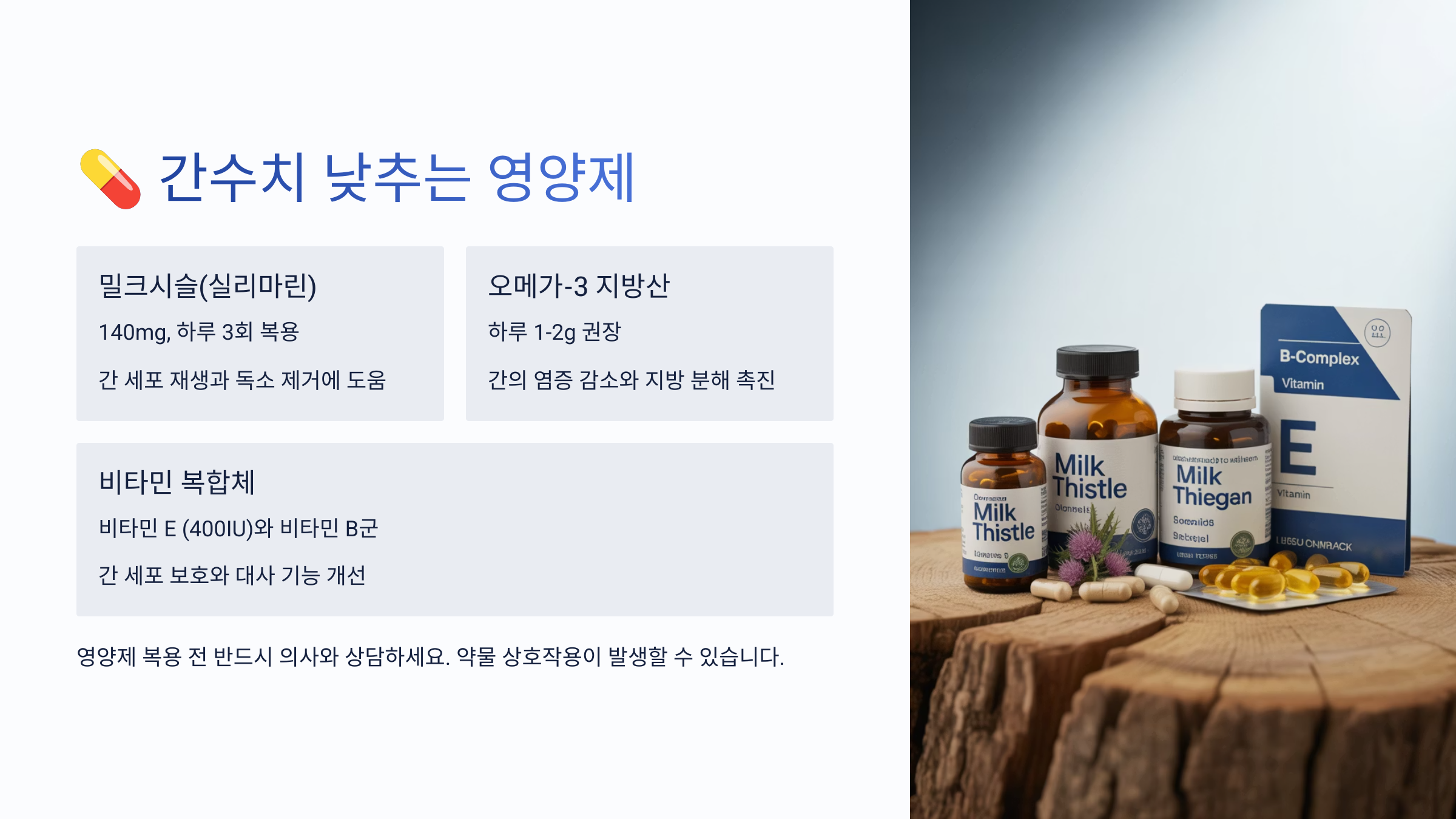 ✅ 영양제는 어디까지나 보조예요. 근본은 생활 습관, 하지만 영양제는 간 관리의 ‘강력한 조력자’가 되어줄 수 있어요!