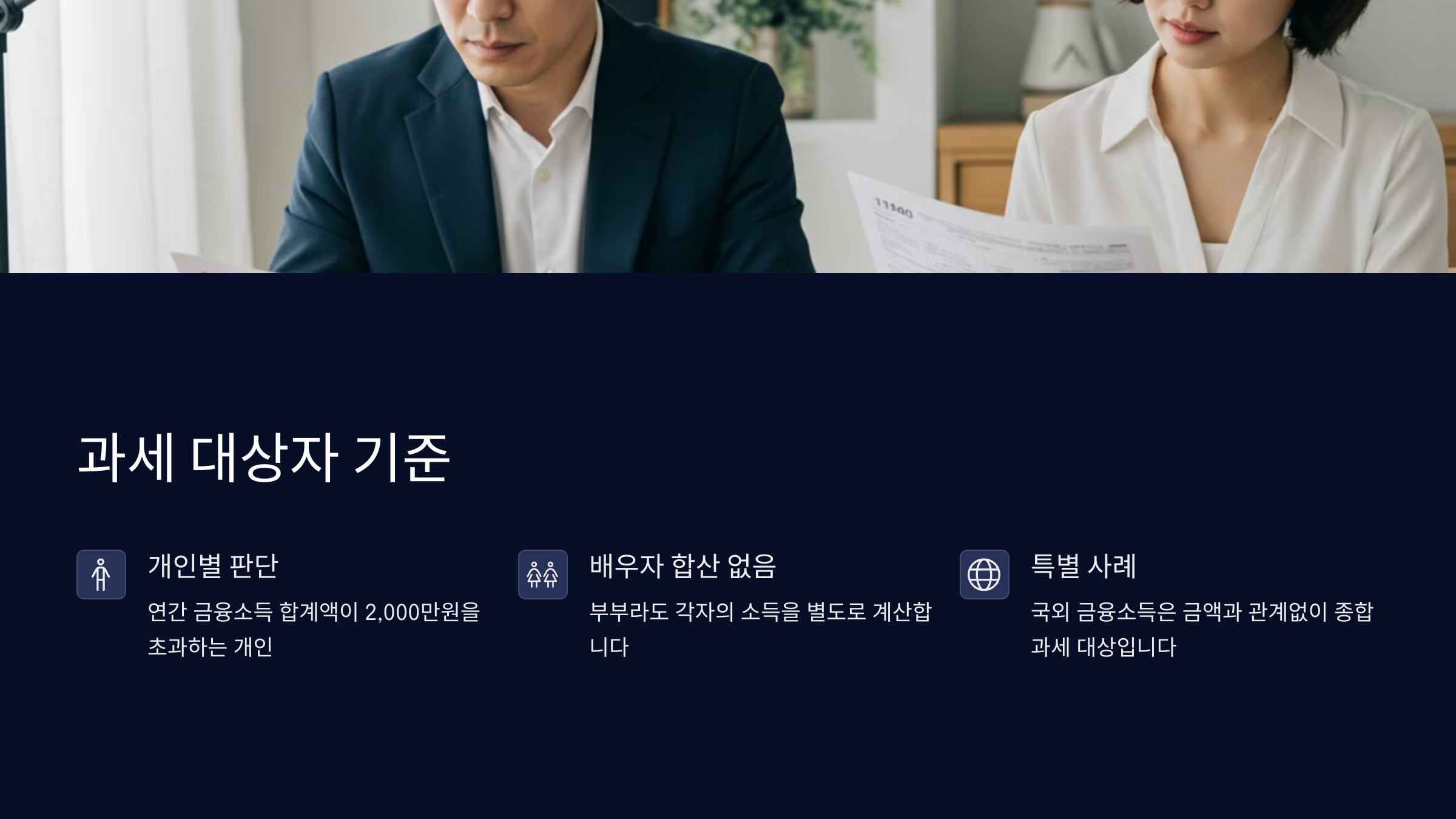 | 과세기준 | 금융소득 연 2,000만 원 초과 시 |