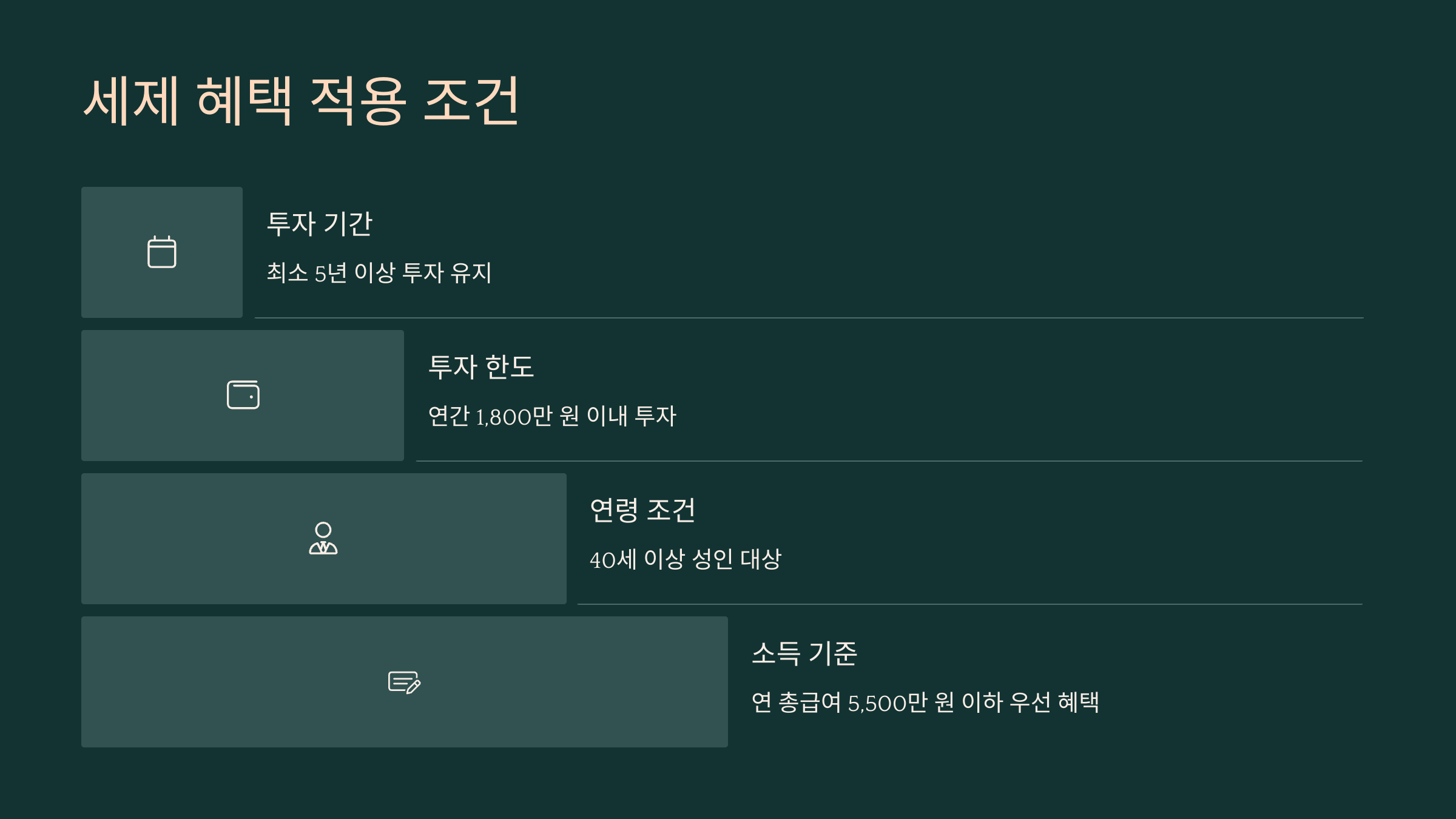 첫 번째 조건은 ‘가입 대상’이에요. 만 19세 이상의 거주자만 가입할 수 있고, 해당 연도에 금융소득종합과세 대상이 아니어야 해요. 즉, 다른 금융소득이 너무 많으면 혜택에서 제외될 수 있어요.