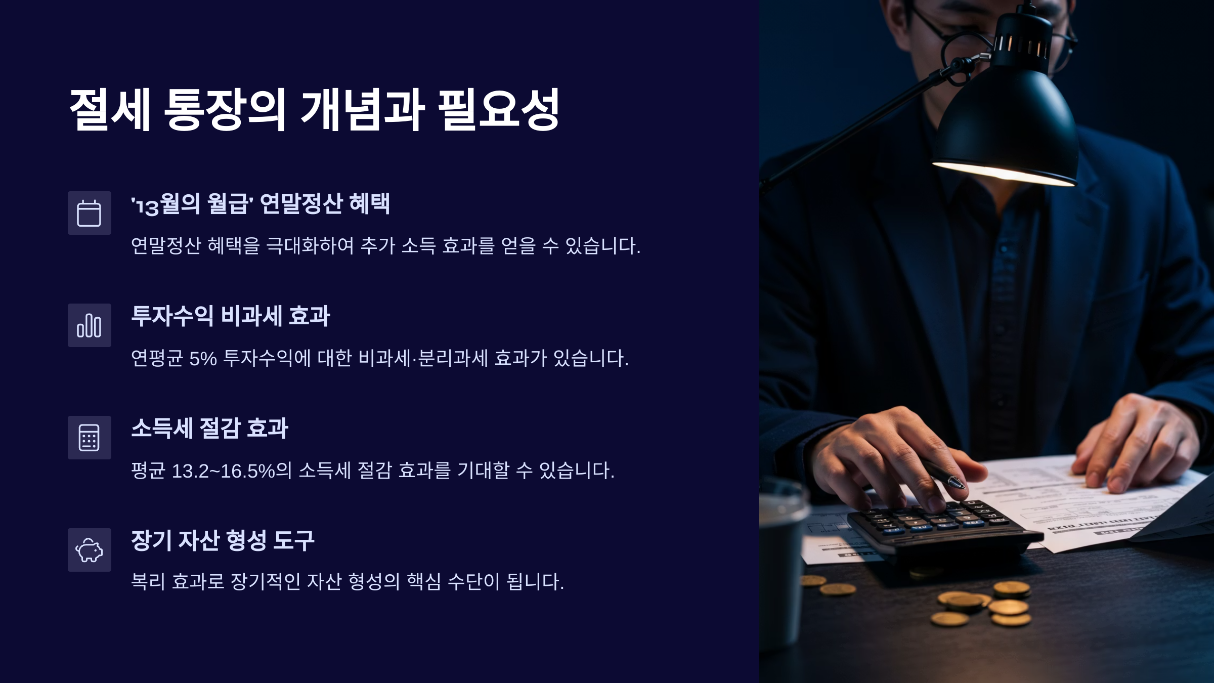 절세 통장이란 이자소득세, 배당소득세, 기타 세금을 줄이거나 아예 면제받을 수 있는 금융상품이에요. 보통 일반 예금이나 적금은 이자 발생 시 15.4%의 세금을 떼는데, 절세 통장은 이런 세금을 줄여주는 기능이 있죠.