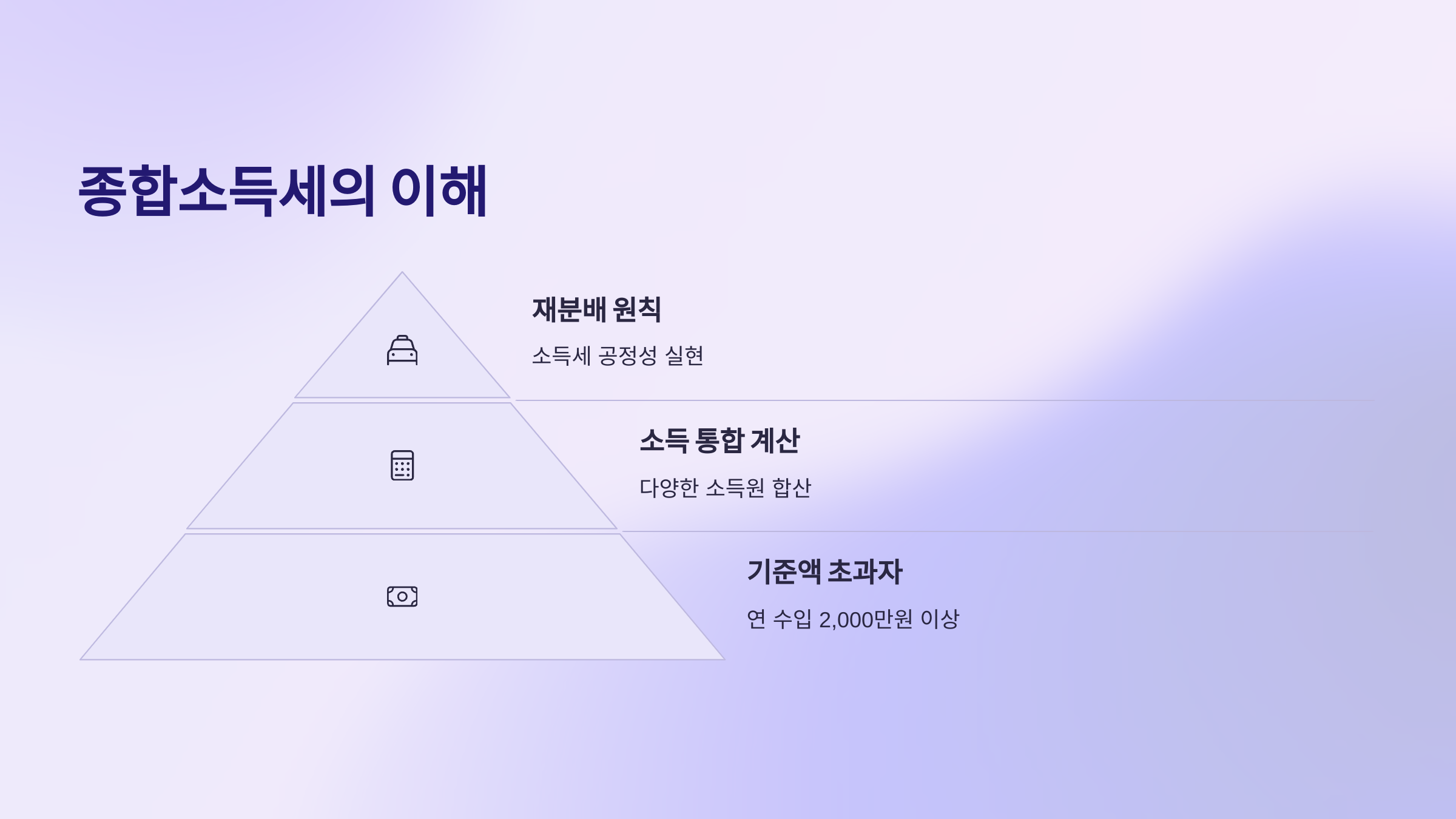 즉, 단일한 소득이 아니라 여러 종류의 소득을 합쳐서 '총소득'을 기준으로 세금을 부과하는 제도라고 볼 수 있어요. 예를 들어, 한 사람이 사업도 하고, 부동산 임대도 하고, 주식 배당도 받는다면 그걸 모두 종합해서 신고하게 되는 거예요.