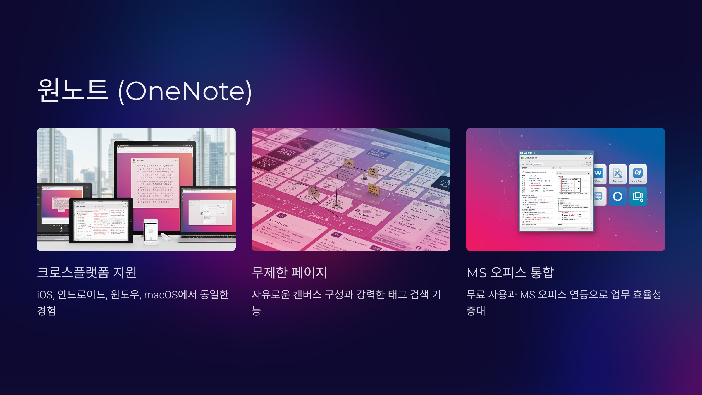 원노트는 마이크로소프트(Microsoft)에서 제공하는 강력한 필기 및 노트 정리 앱이에요! 🖥️✨