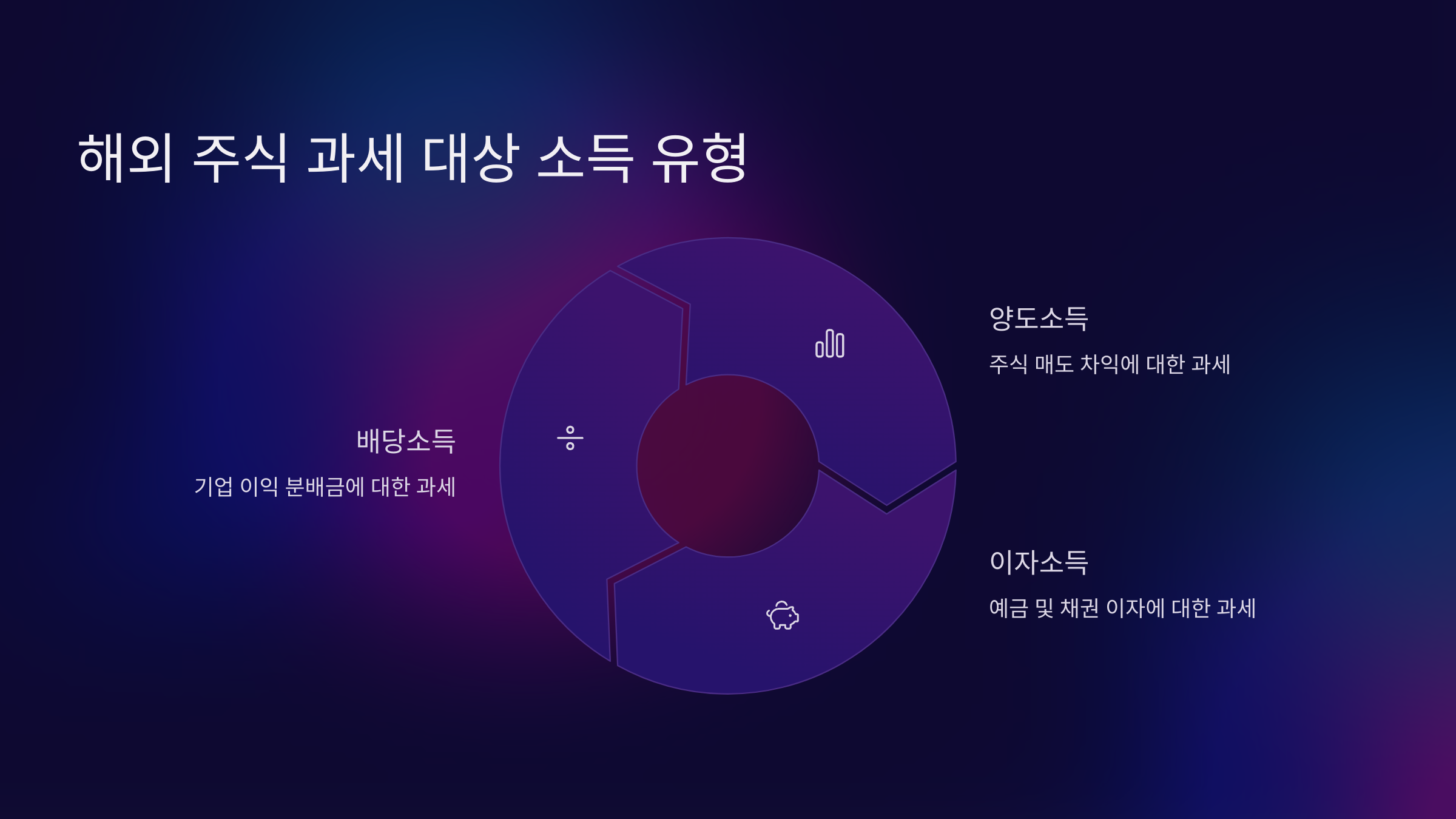 해외 주식 투자에서 과세 대상이 되는 소득 유형은 크게 두 가지예요. 바로 양도소득과 배당소득이에요. 각각의 기준과 세율이 다르니 구분해서 기억하는 게 좋아요.