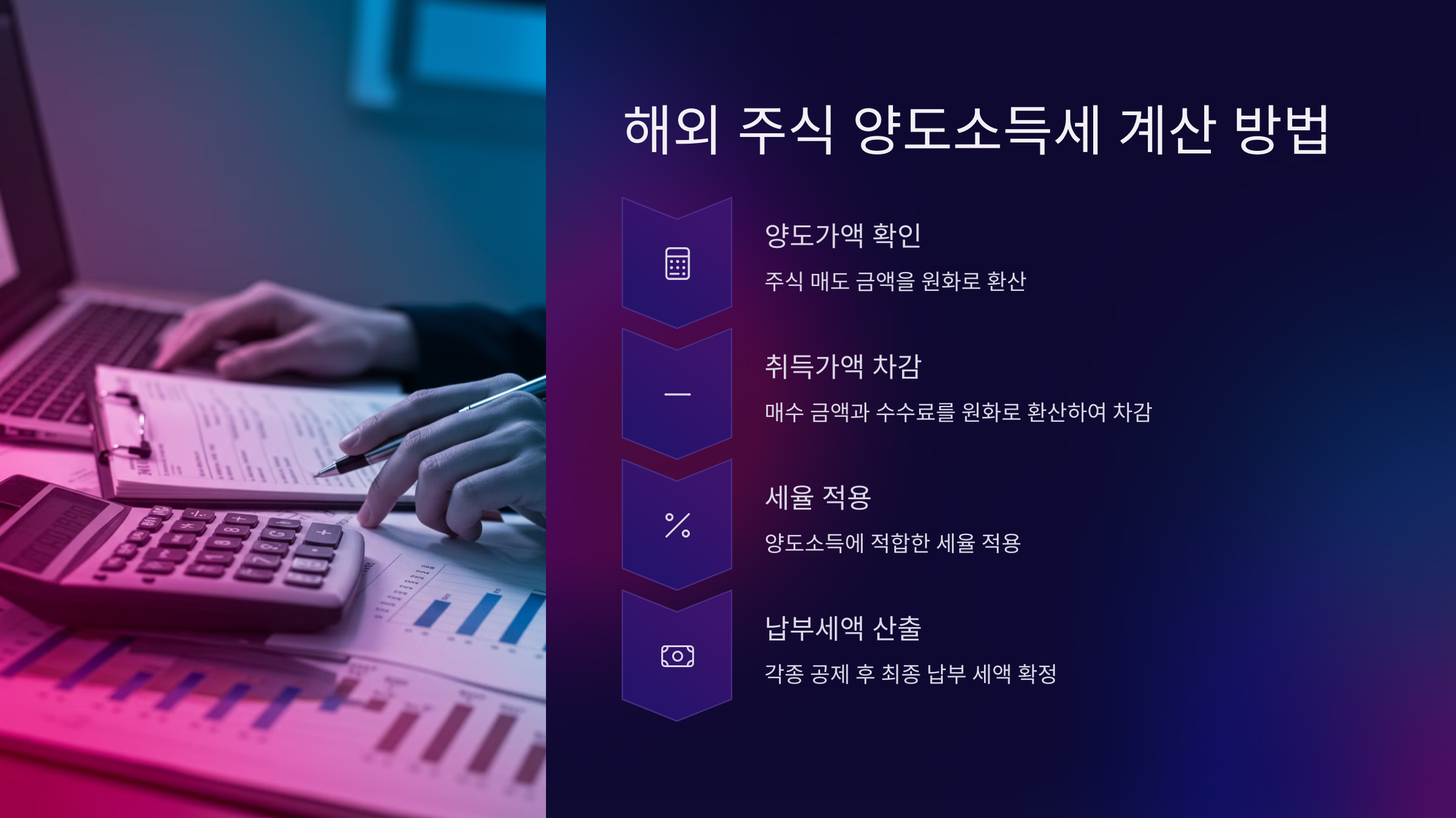 양도소득세는 단순히 ‘매도금액 - 매입금액’으로 계산되진 않아요. 해외 주식은 환율, 수수료, 거래일 기준에 따라 실제 계산이 더 복잡할 수 있어요. 정확히 이해하고 계산하는 게 중요해요! 😵💫