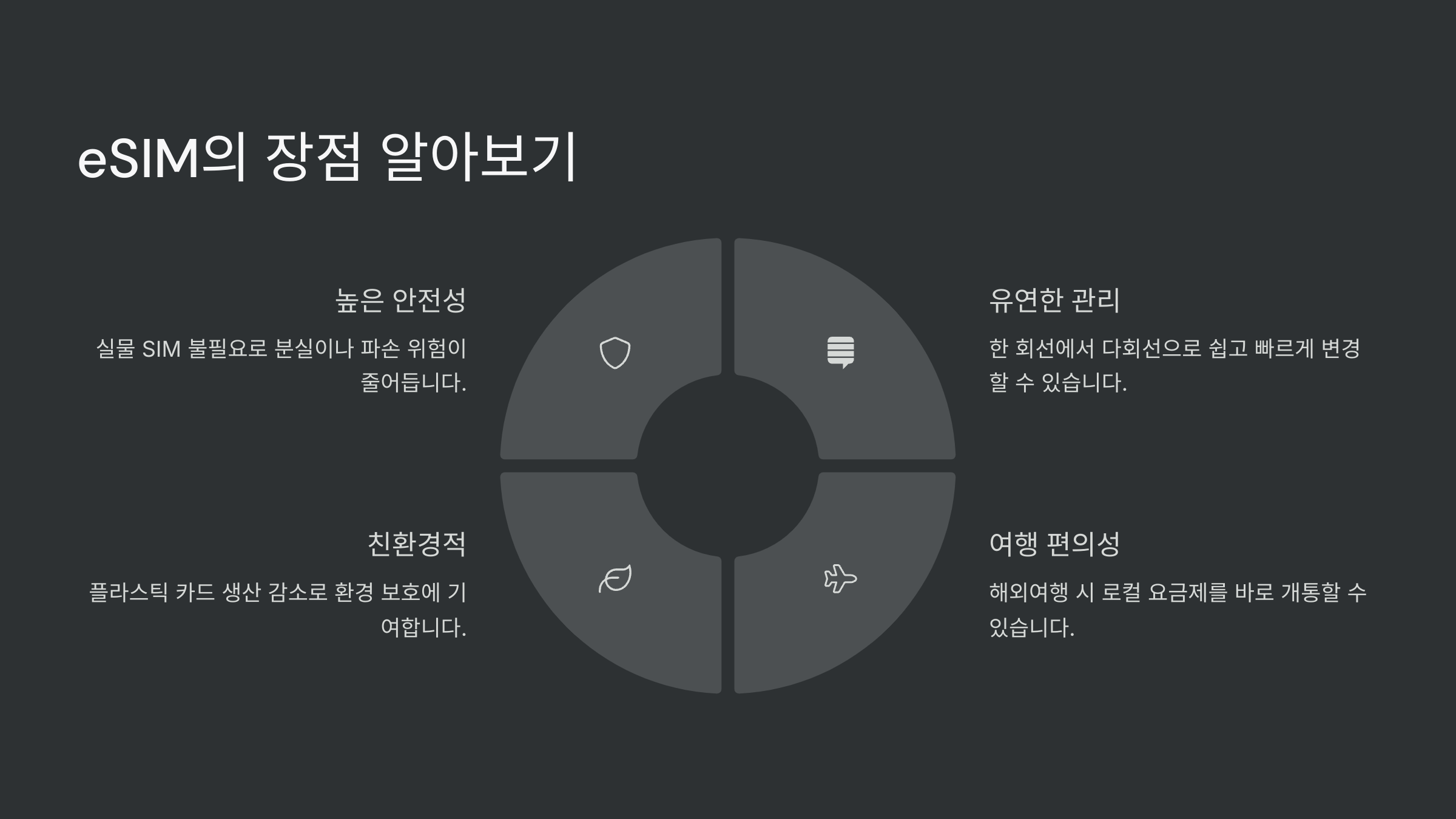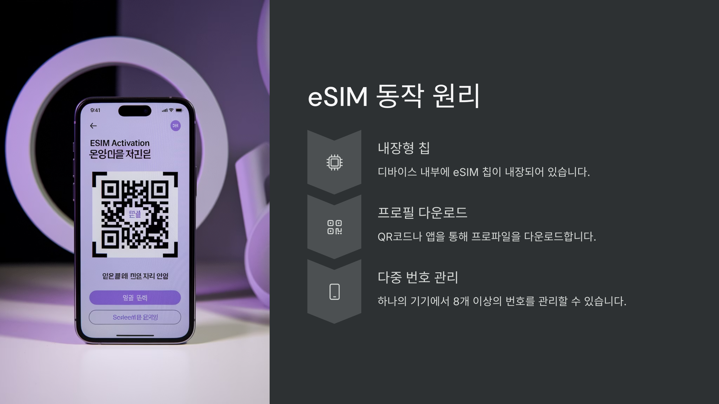 | 편리성 | SIM 교체 없이 즉시 활성화 |