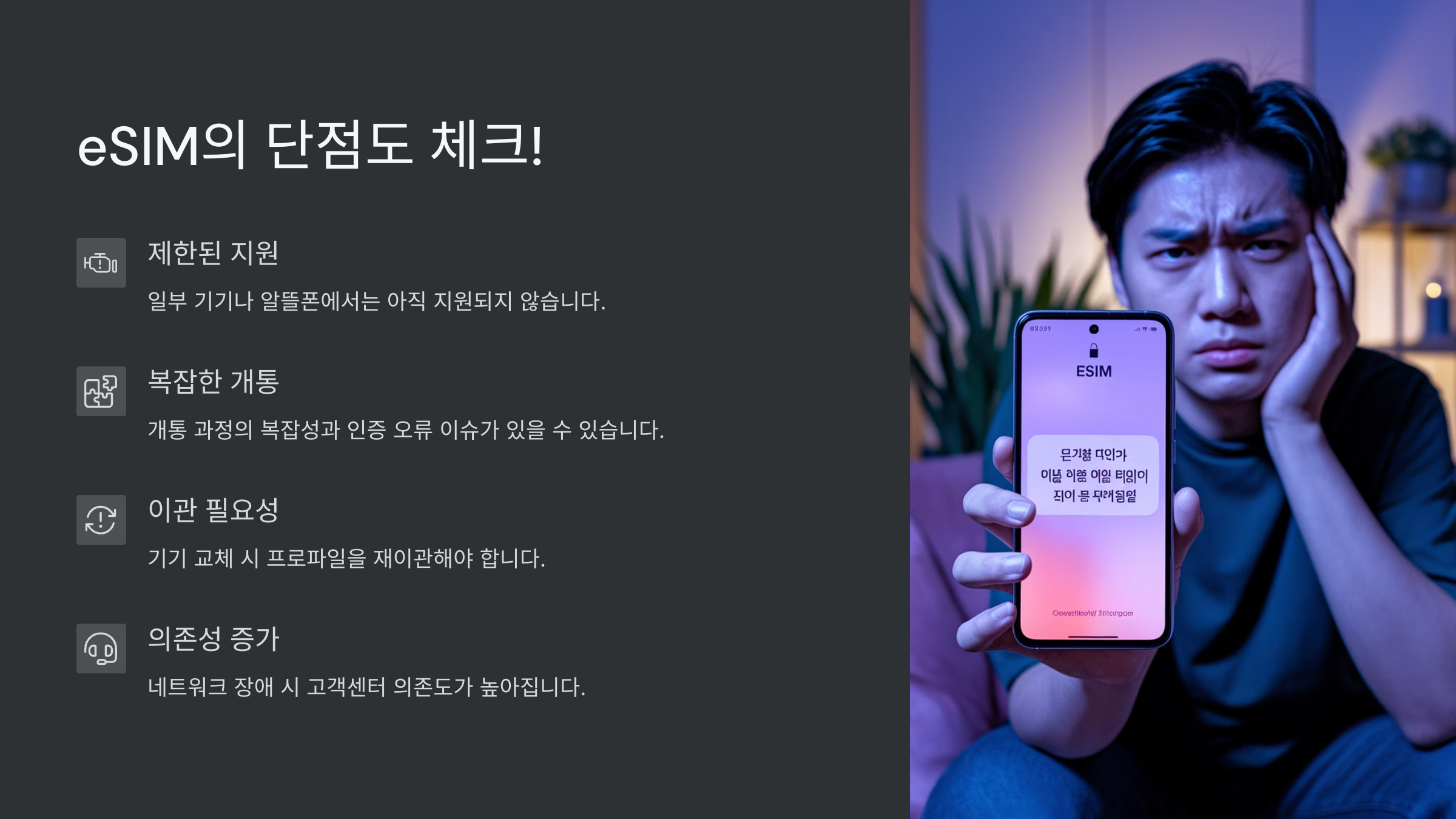 ⚠️ eSIM 주요 단점 요약