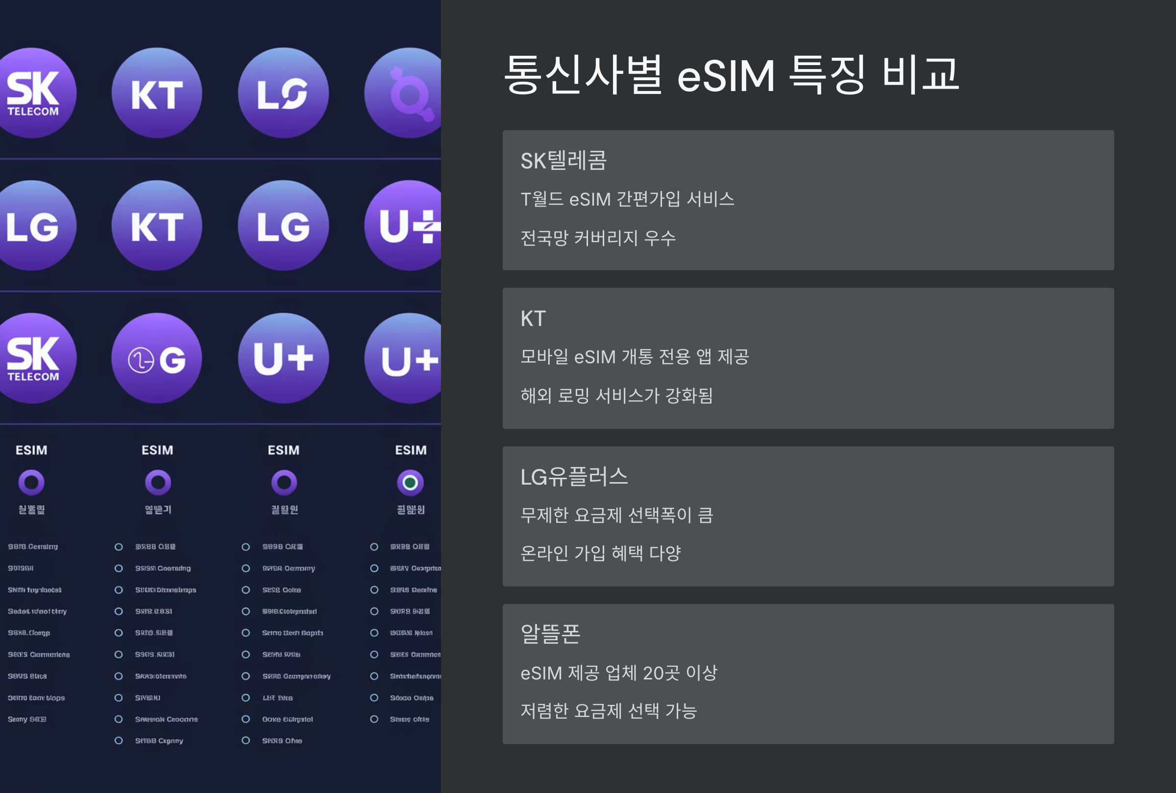 🏢 통신사별 eSIM 특징 비교